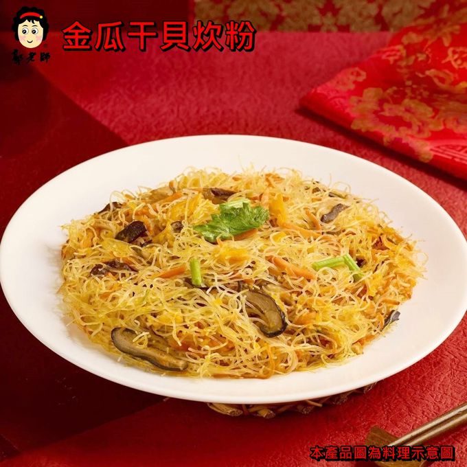 金瓜干貝炊粉:選用台灣老牌虎牌米粉,口感Q彈不爛,金瓜帶有濃郁的香氣及鮮甜,再加上油蔥酥、乾香菇、珠貝及蝦皮提鮮,把傳統的台式炒米粉又升級了一個檔次。