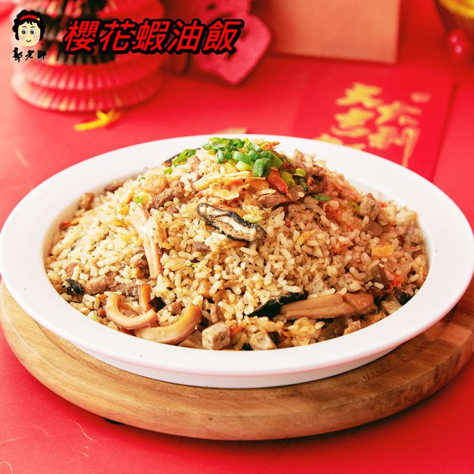 櫻花蝦油飯:特別挑選古法研製信成麻油來炒製材料,香醇的麻油搭配東港櫻花蝦、阿根廷魷魚、台灣黑豬肉,把食材的香氣炒出融入麻油之中,再配上嚴選長糯米拌煮,香氣十足,口感軟Q,料多扎實滋味鮮美。