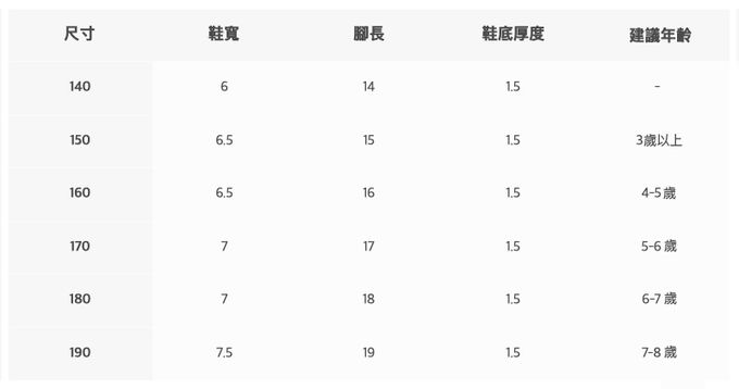 鞋子的實際尺寸可能會因測量當下的起迄點、轉角摺角處等,存在1-3cm左右的誤差。每台螢幕設備設定均有所不同,可能會存在些許色差,以實物為準。購買前請參考尺寸表,並參考孩子目前鞋款或實際測量結果選購。