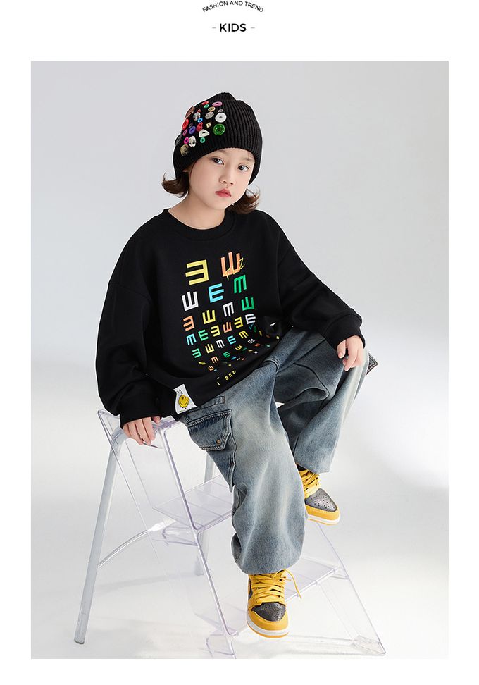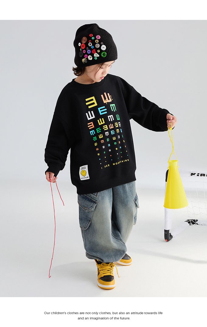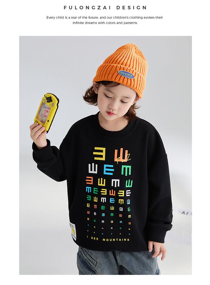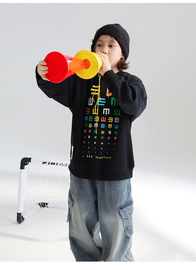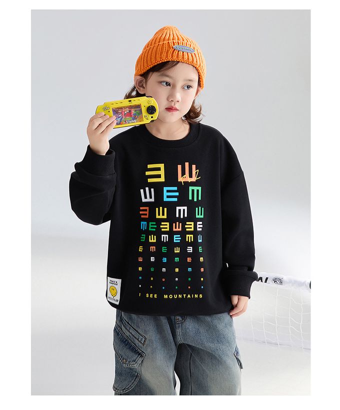 圓領休閒寬鬆長袖上衣-視力檢查-黑色