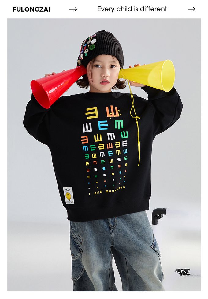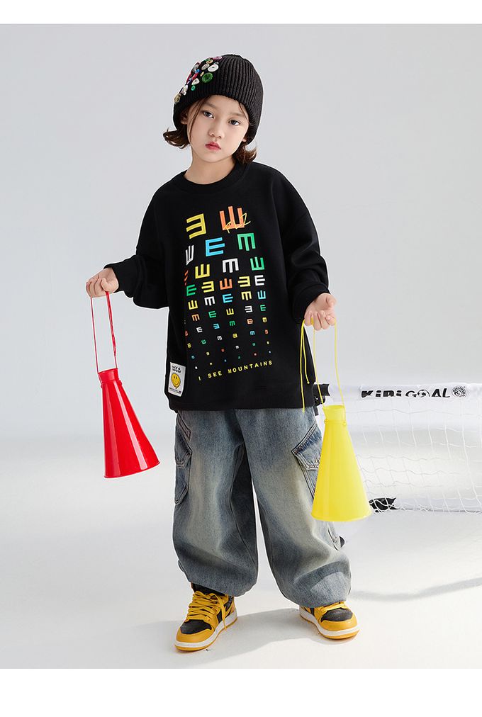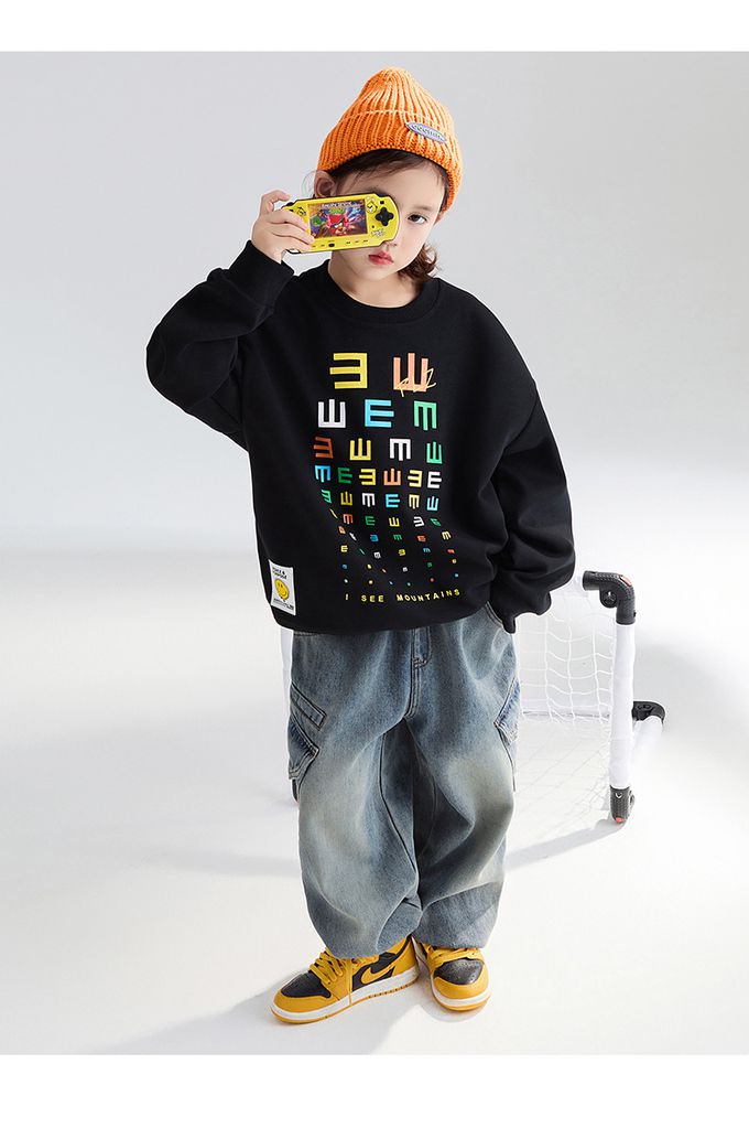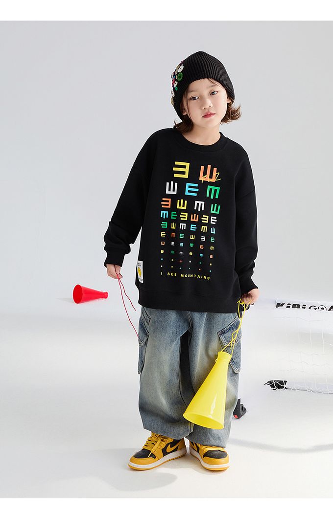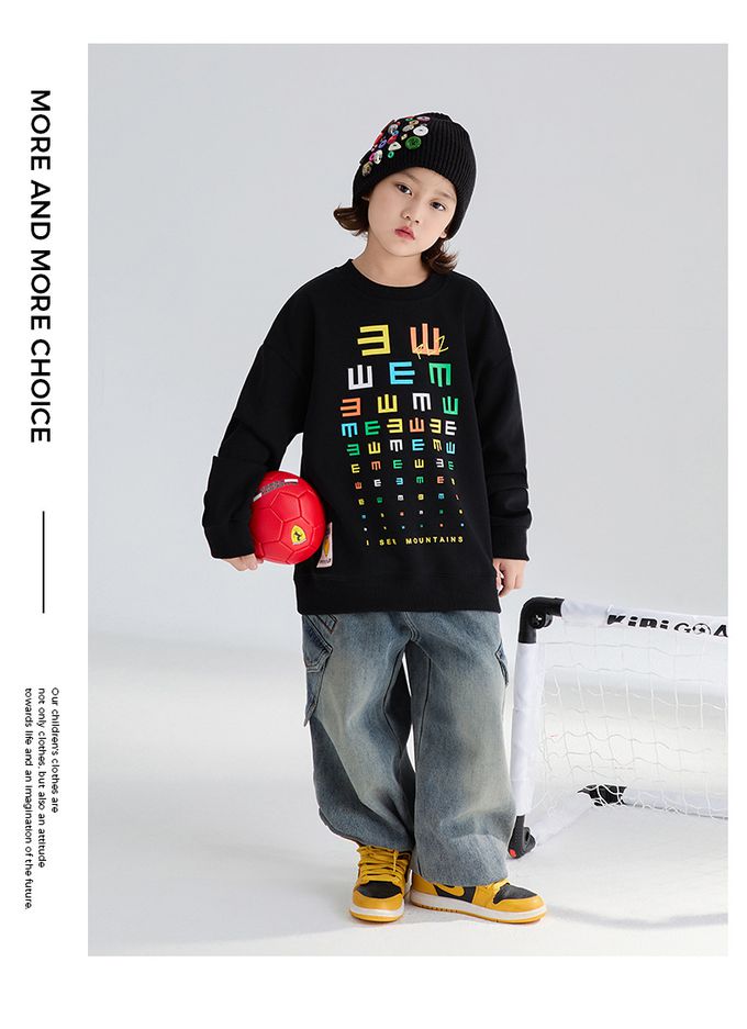 圓領休閒寬鬆長袖上衣-視力檢查-黑色