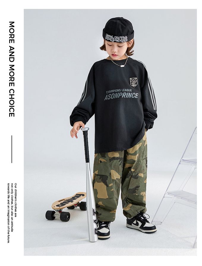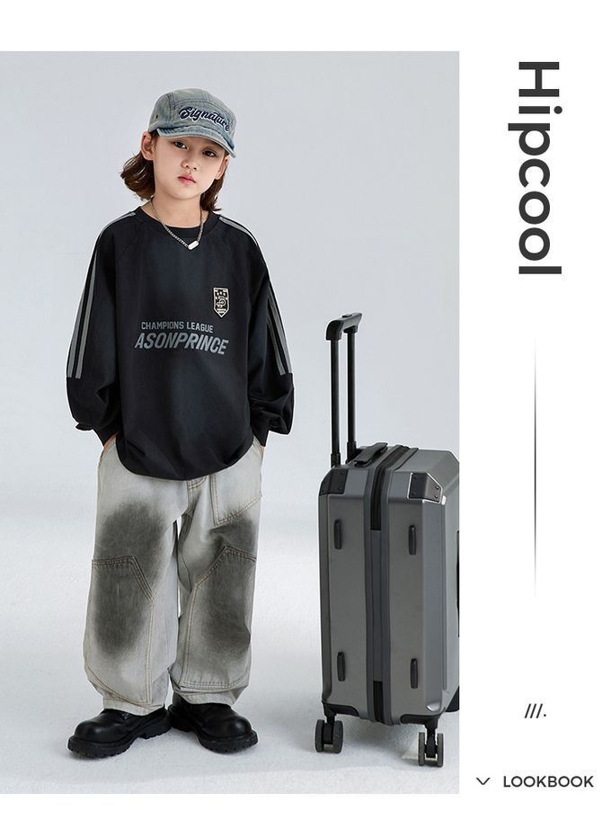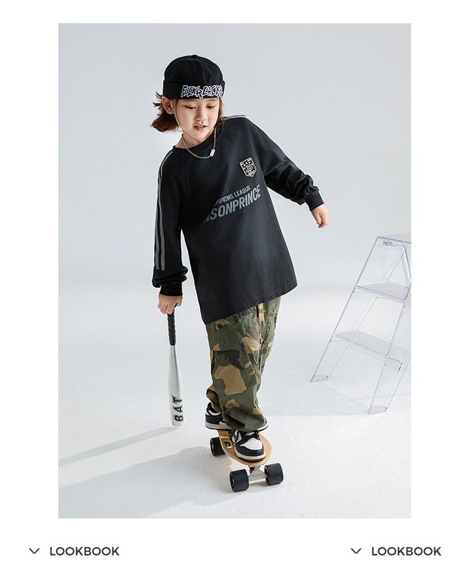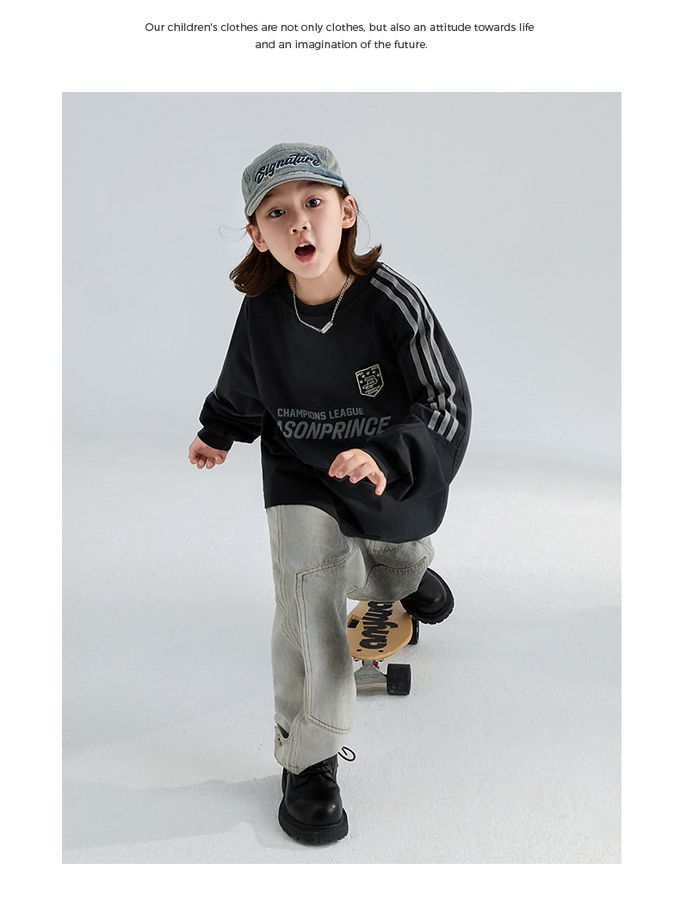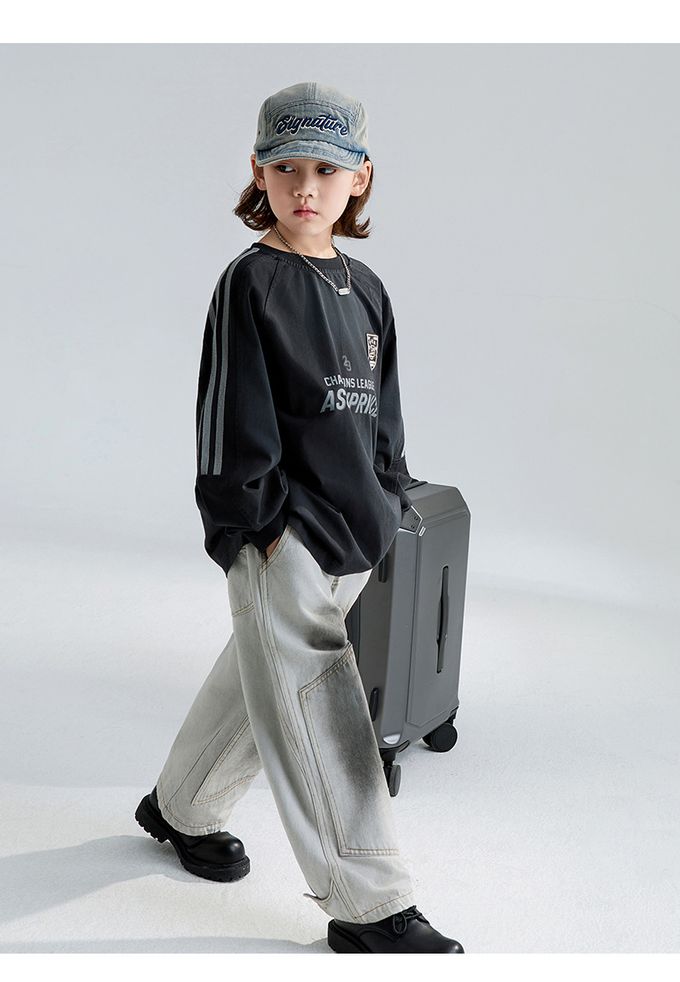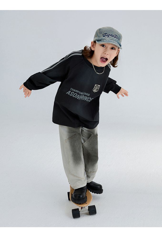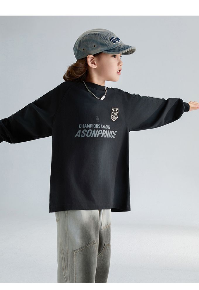 純棉圓領寬鬆長袖上衣-徽章字母-黑色