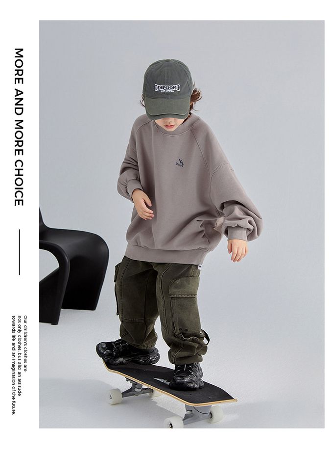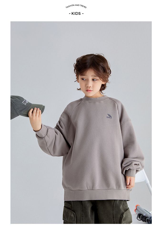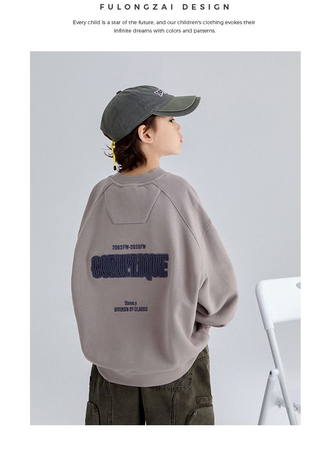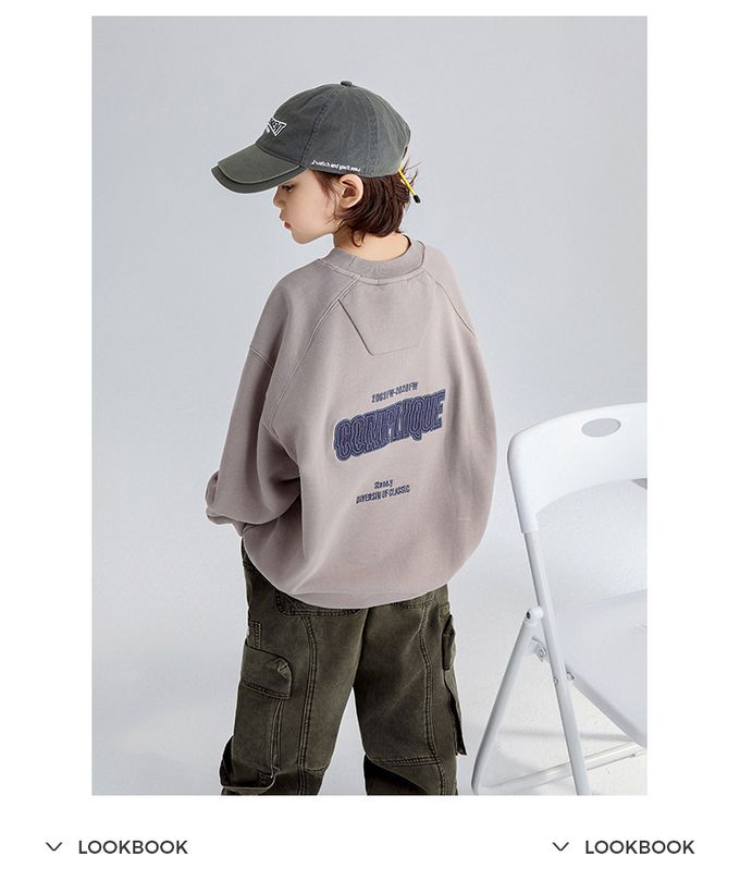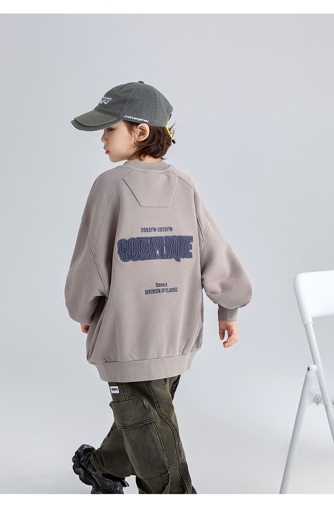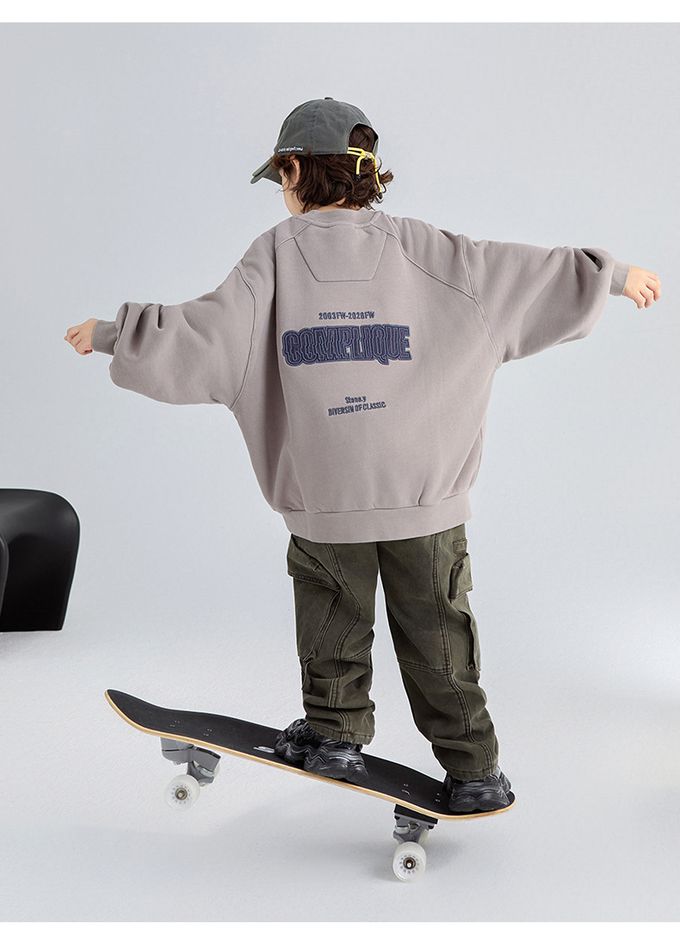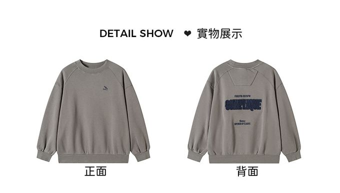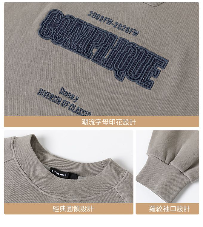 圓領寬鬆長袖上衣(加絨)-潮流字母刺繡-灰色