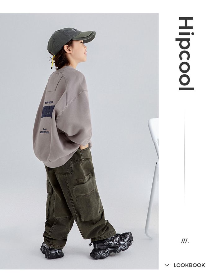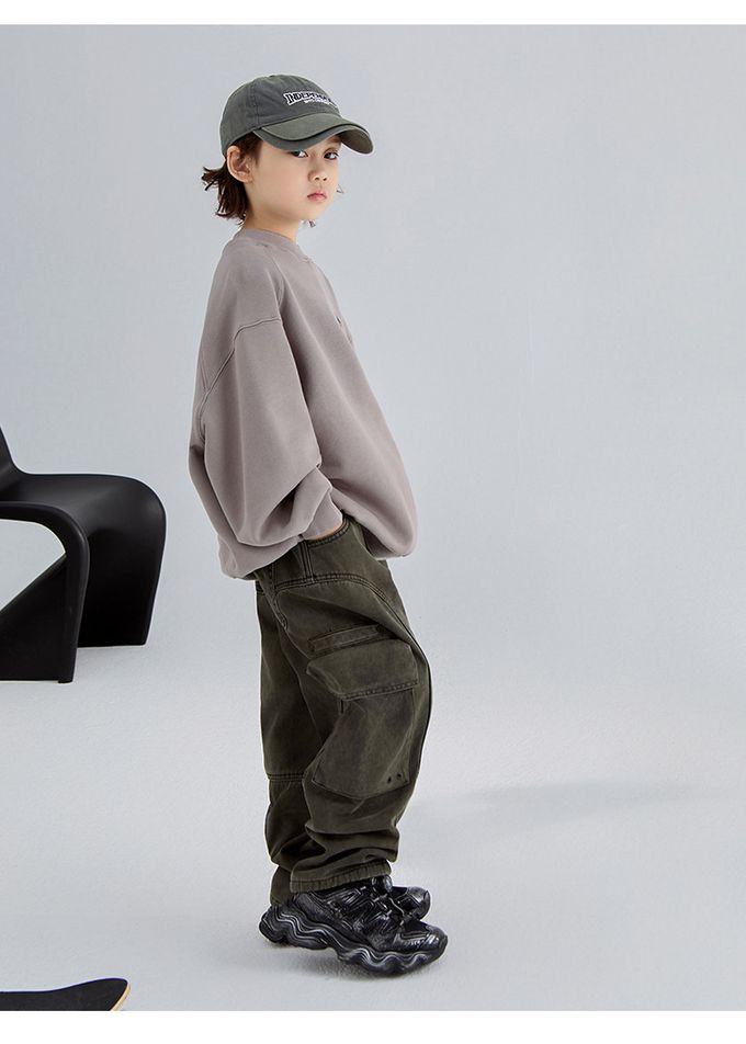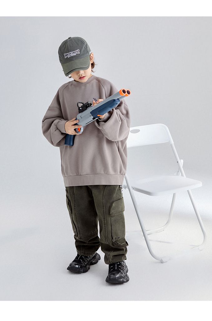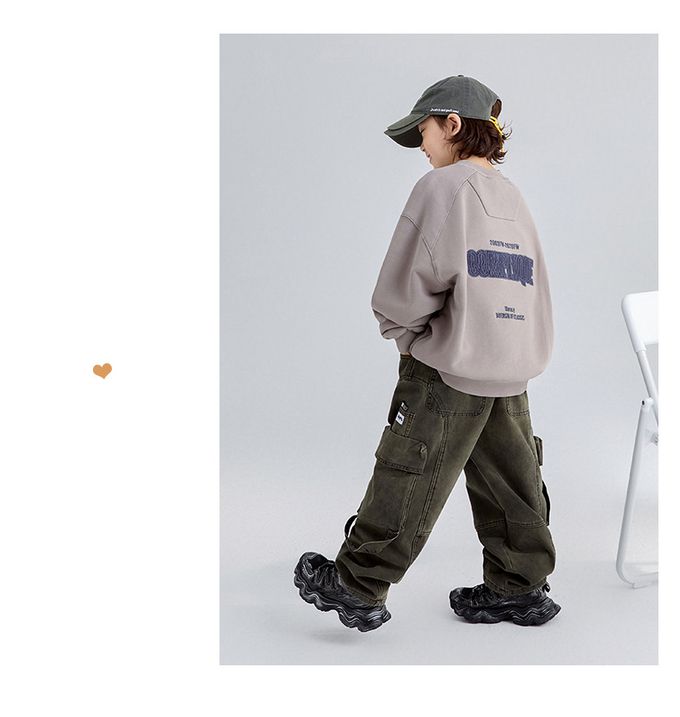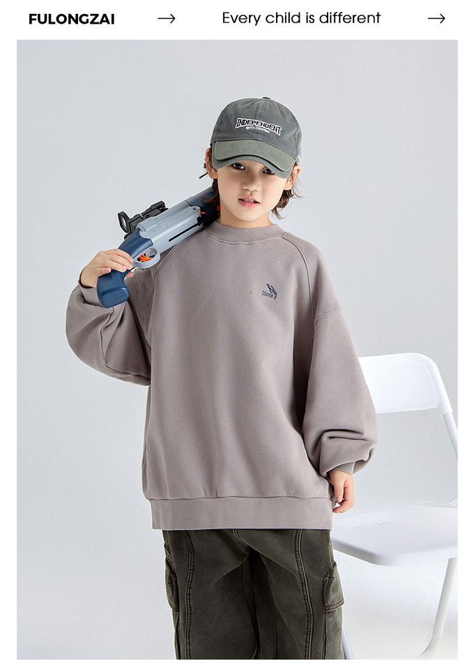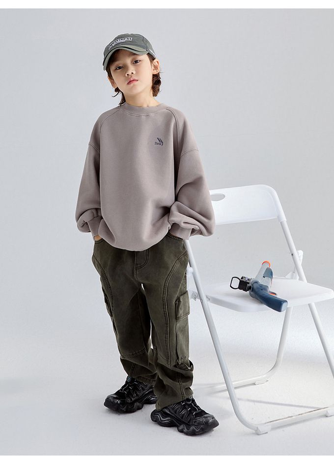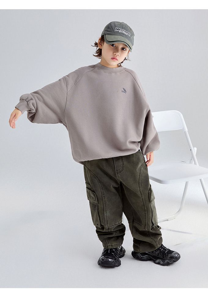 圓領寬鬆長袖上衣(加絨)-潮流字母刺繡-灰色