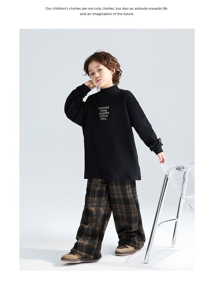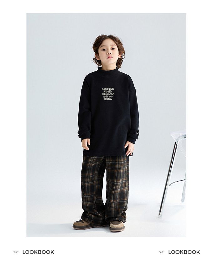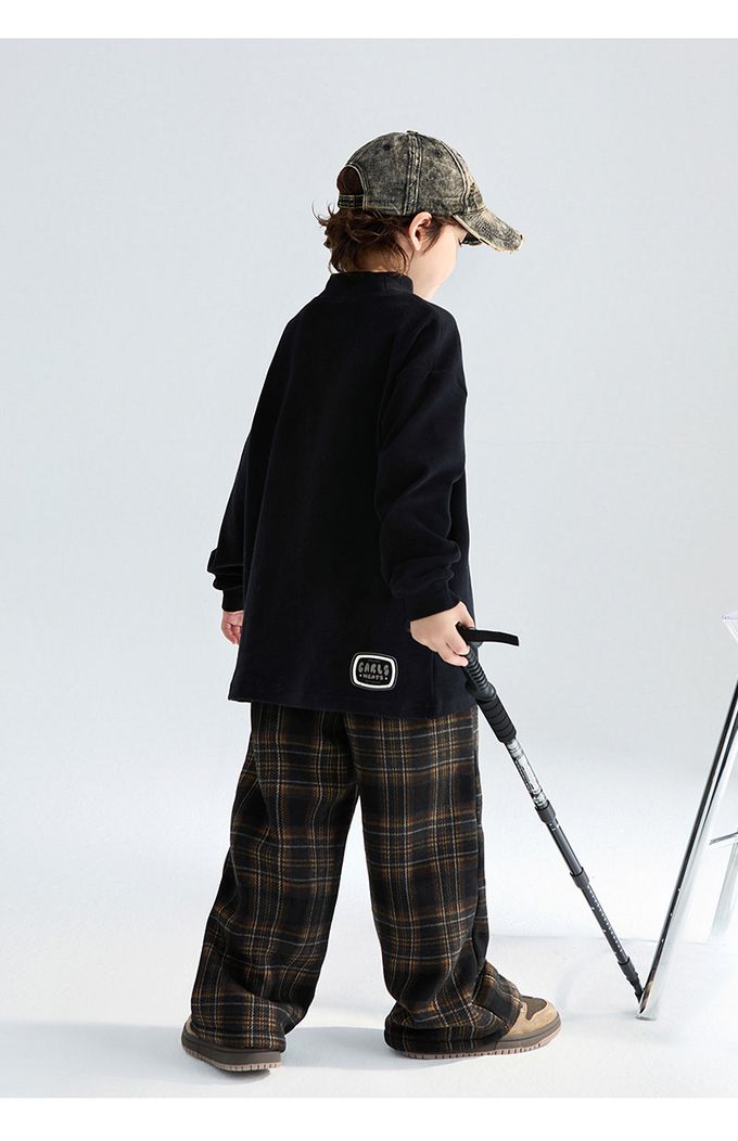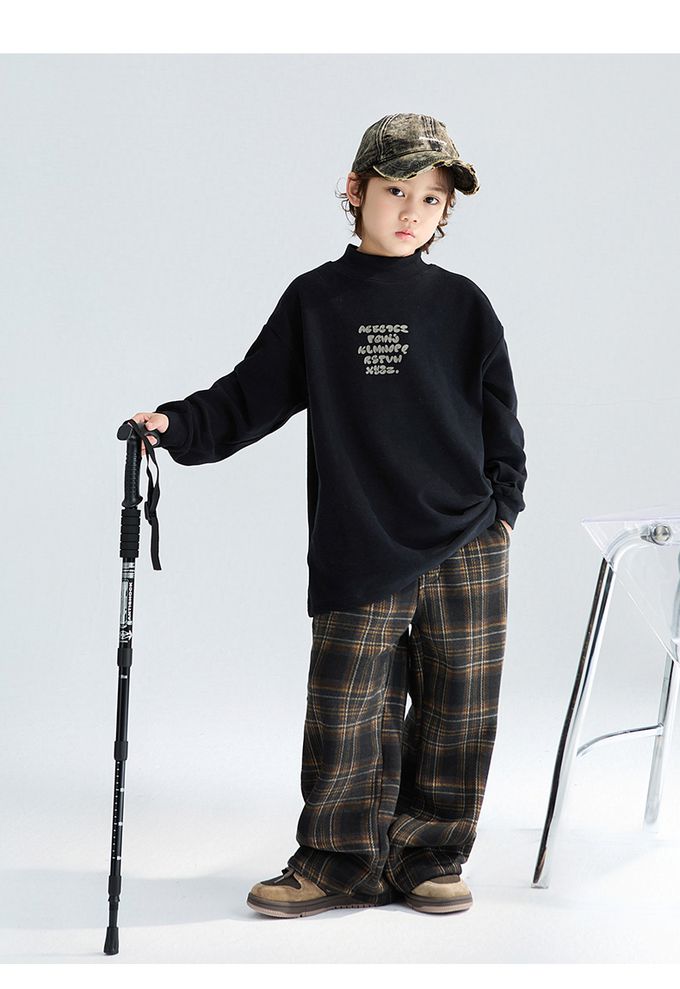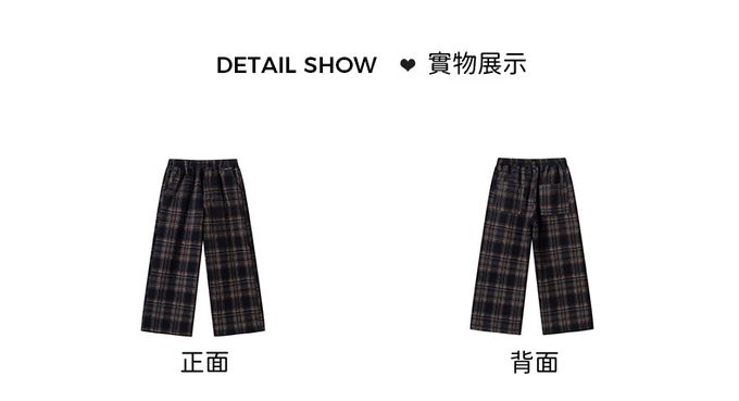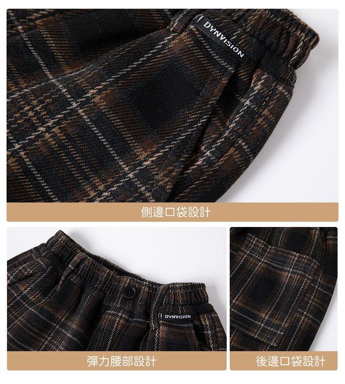 腰鬆緊休閒長褲(加絨)-英倫風格紋-黑x咖