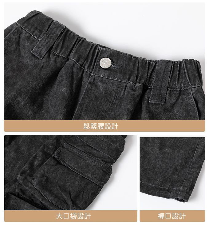 純棉腰鬆緊休閒牛仔長褲-大口袋-黑色
