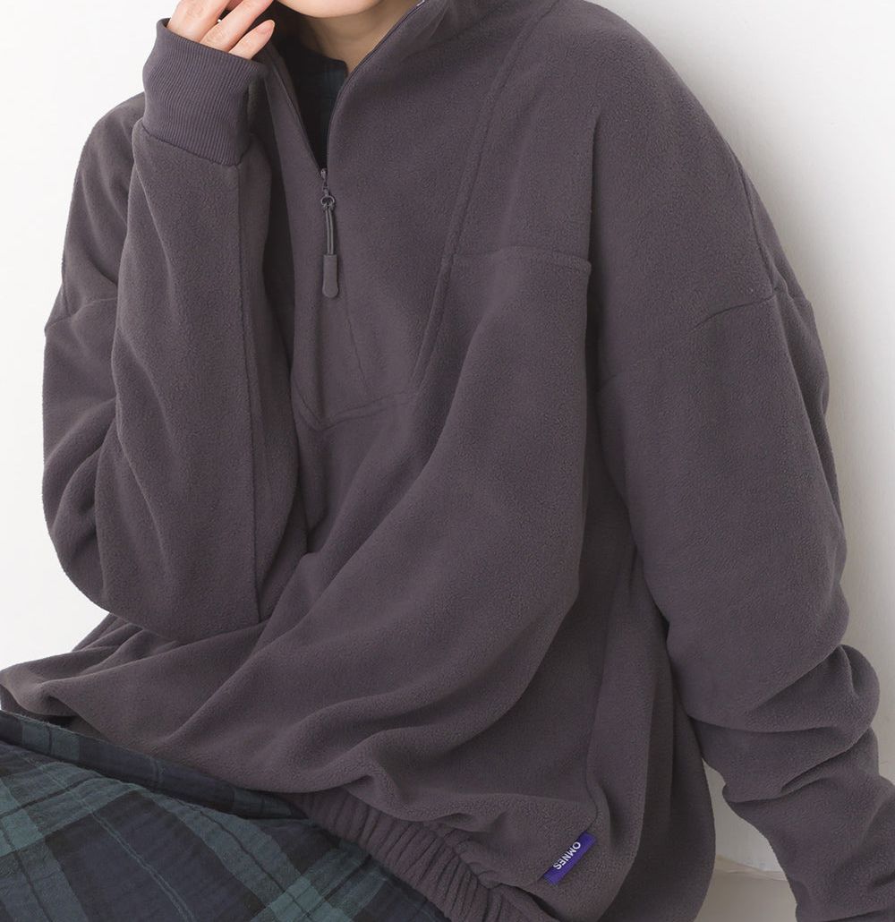 防靜電 半拉鏈立領微絨長袖上衣