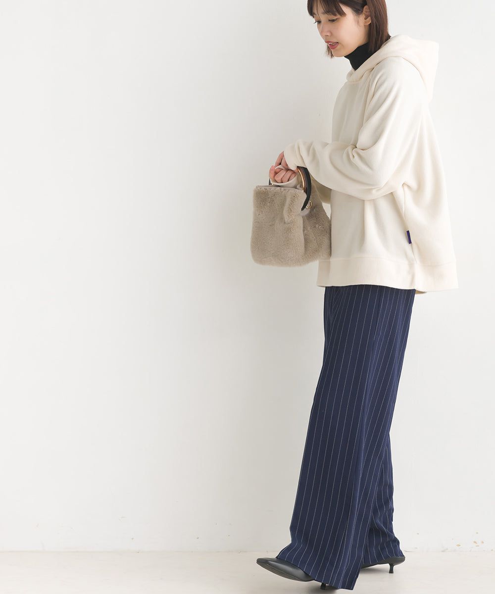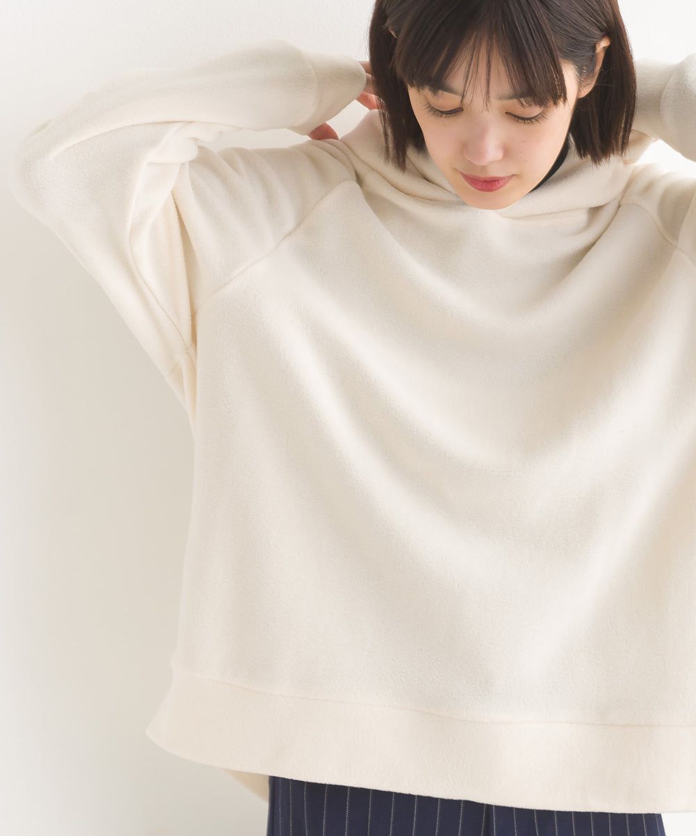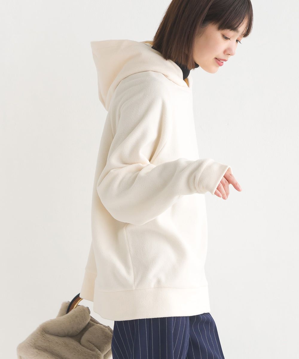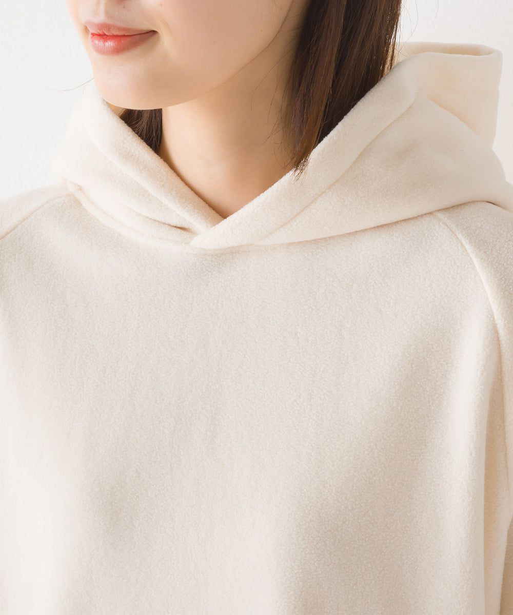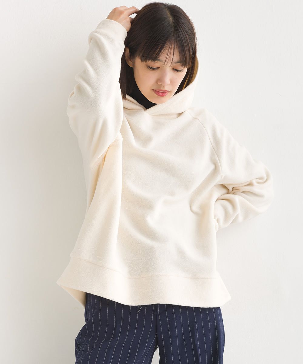 日本 OMNES - 防靜電 微絨休閒連帽長袖上衣-白