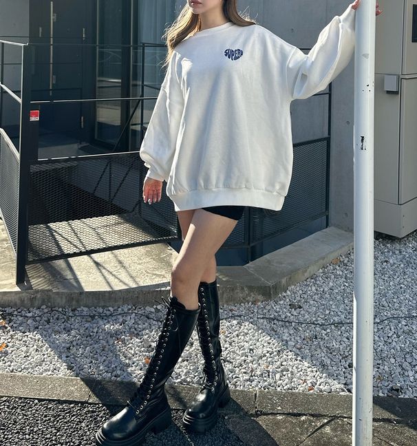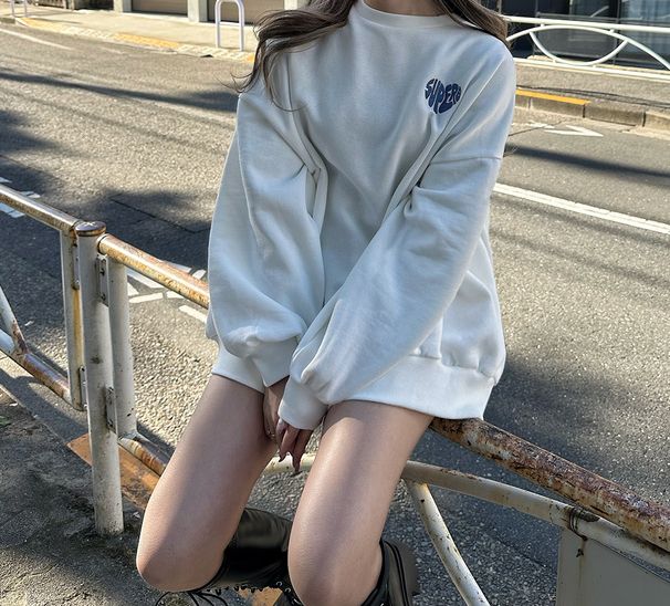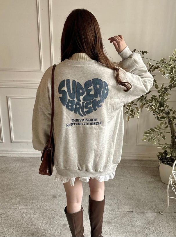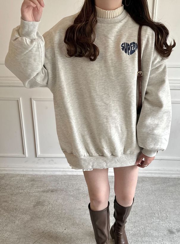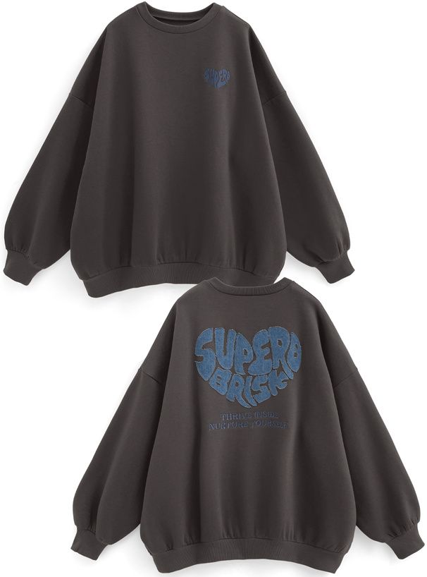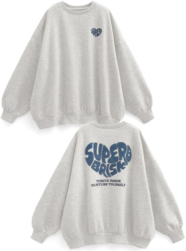 日本 GRL - 背後俏皮心型印花大學T-淺灰 (F)