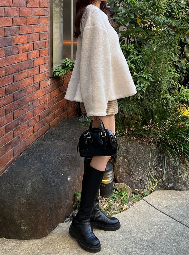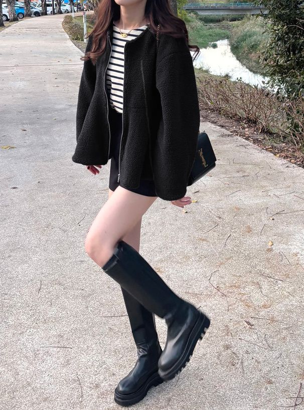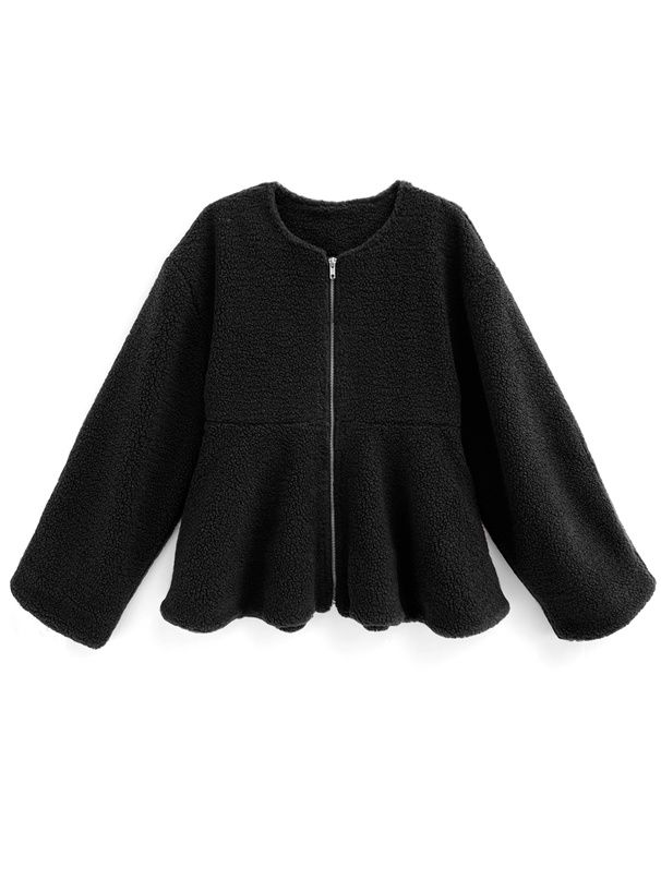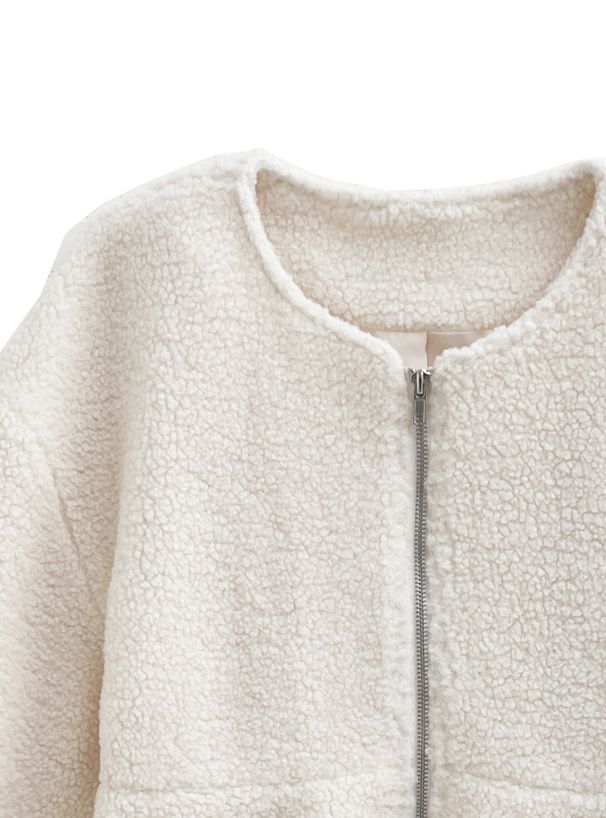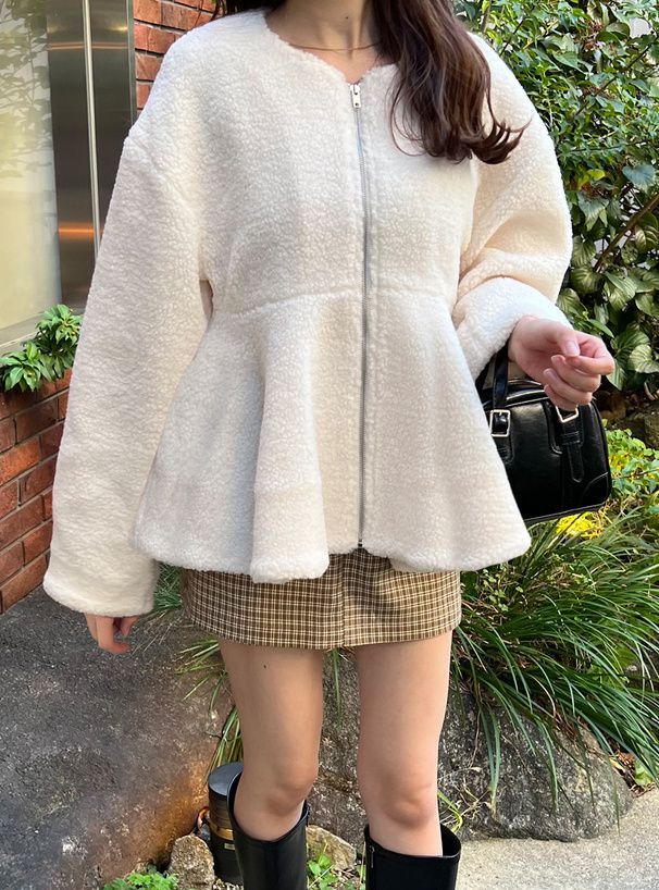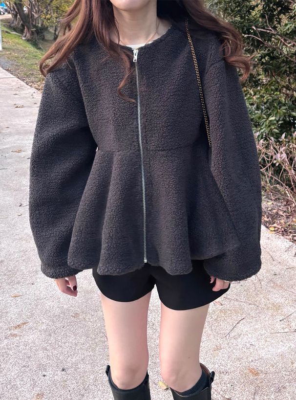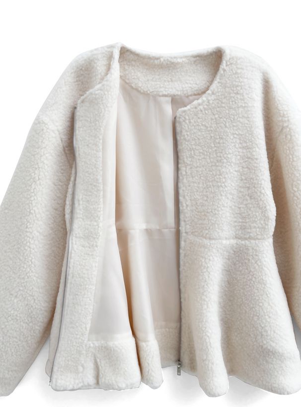 甜美傘狀下擺無領短絨毛外套