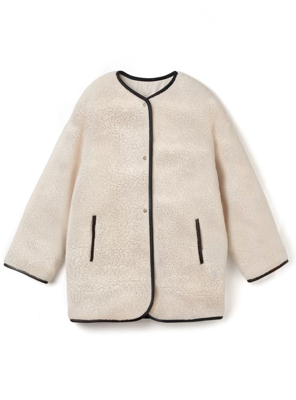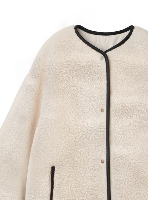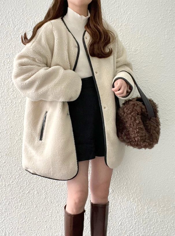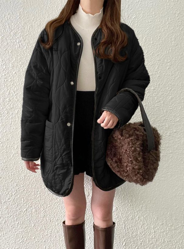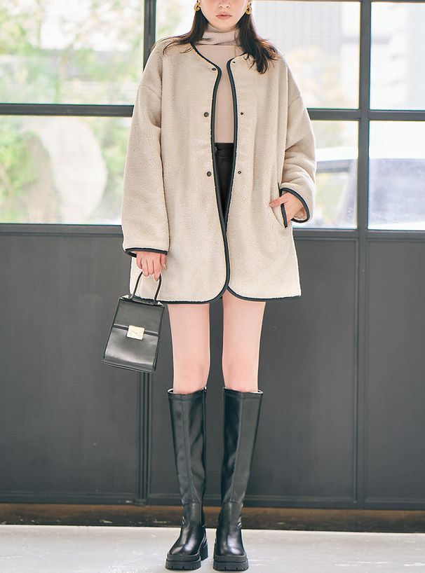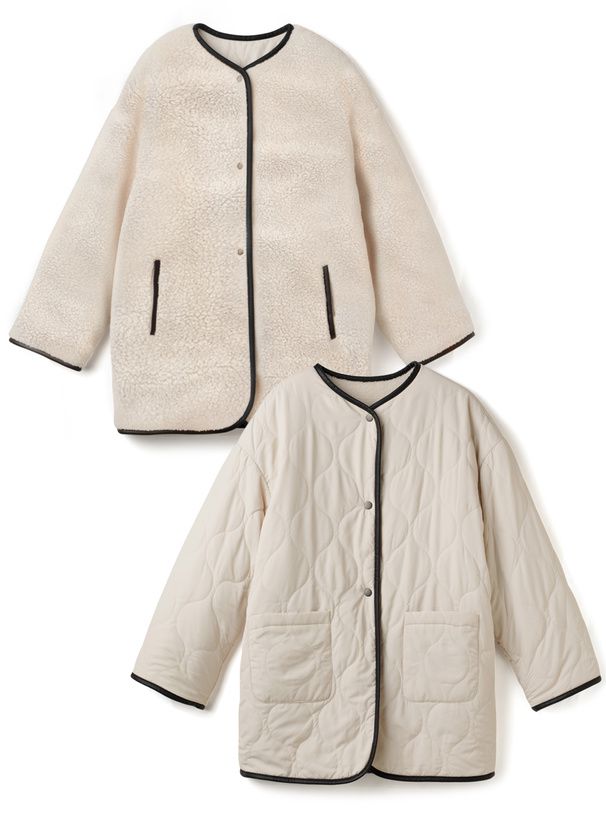 • 品名:絎縫x絨毛雙面穿無領寬版外套