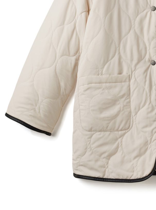 日本 GRL - 絎縫x絨毛雙面穿無領寬版外套-皮革滾邊-黑 (F)