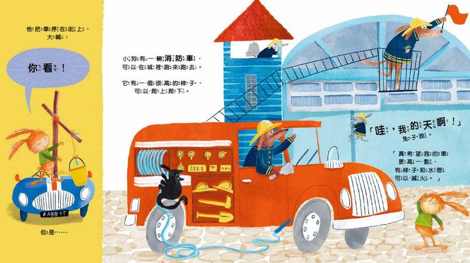 「這本書的內容講述關於車輛、發明和動物救援等有趣的主題。從主角兔子身上,我們可以學到很重要的一門課——去幫助別人,不要自私。適合3-8歲兒童。」