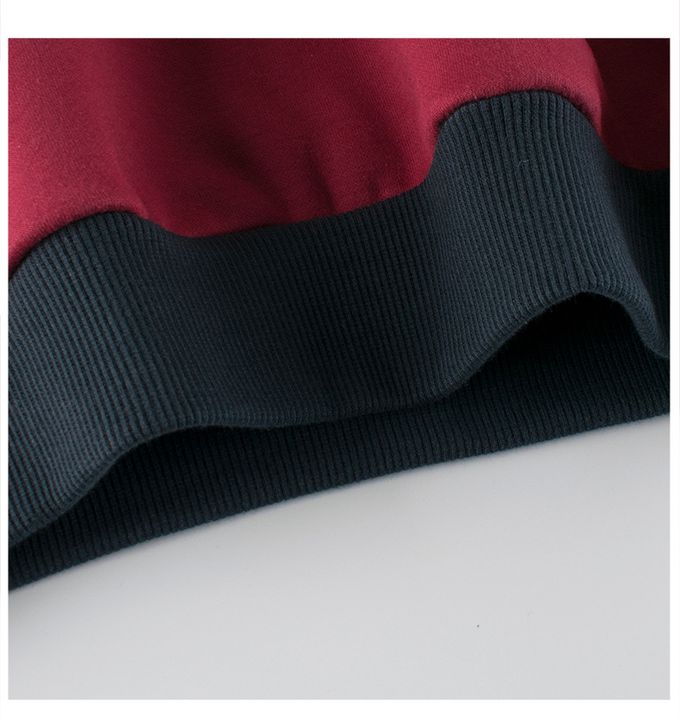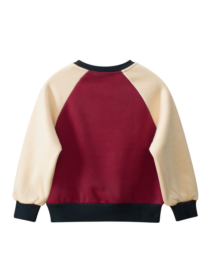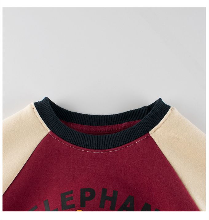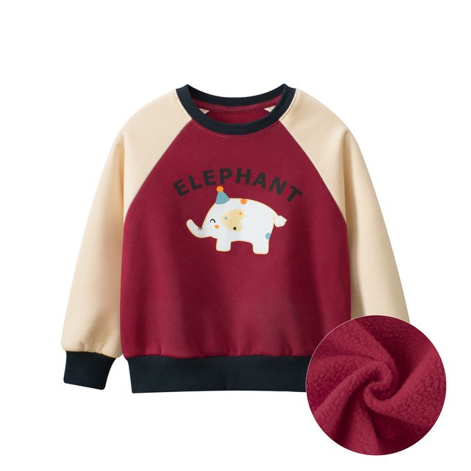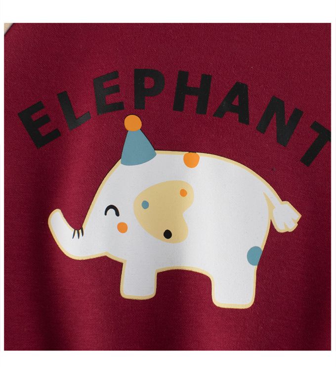 加絨圓領長袖上衣/大學T-可愛大象-棗紅/米杏