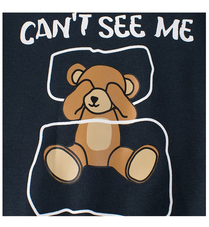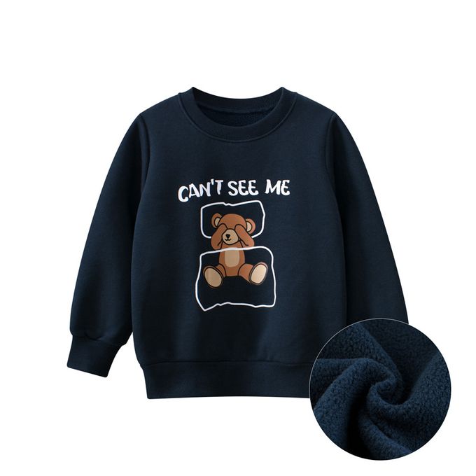 加絨圓領長袖上衣/大學T-你看不見我-藏青