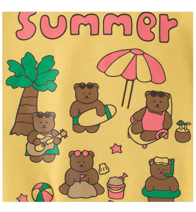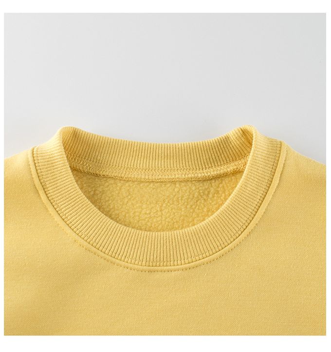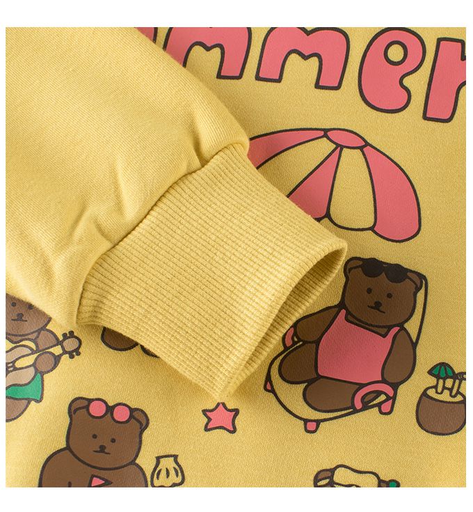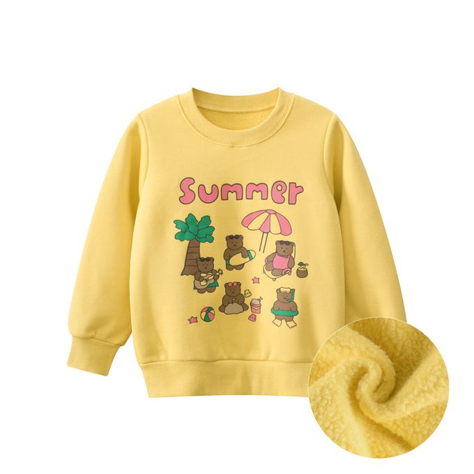 加絨圓領長袖上衣/大學T-夏季沙灘-黃色