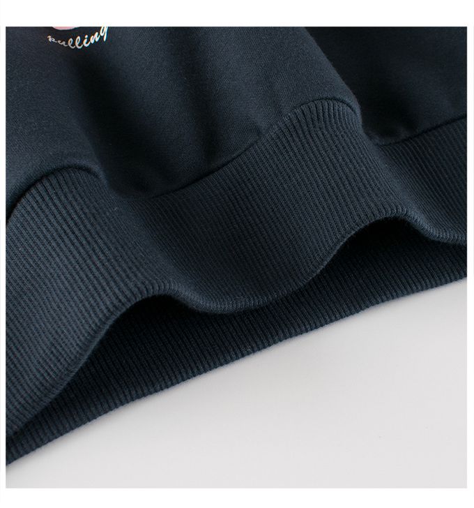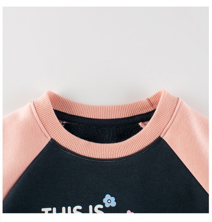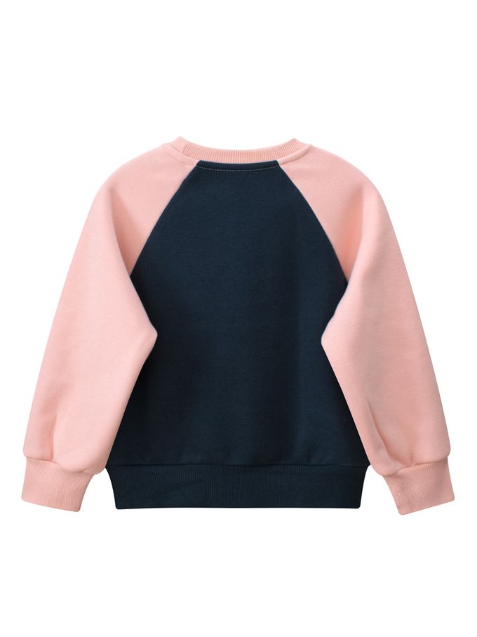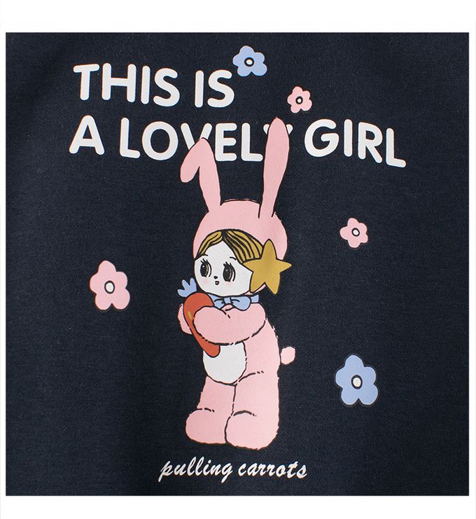 加絨圓領長袖上衣/大學T-兔兔女孩兒-藏青/粉紅