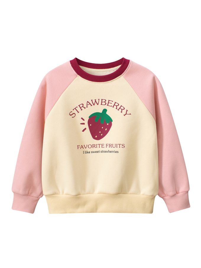 加絨圓領長袖上衣/大學T-甜甜草莓-米杏/粉紅