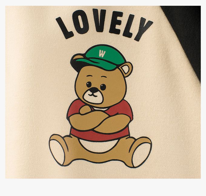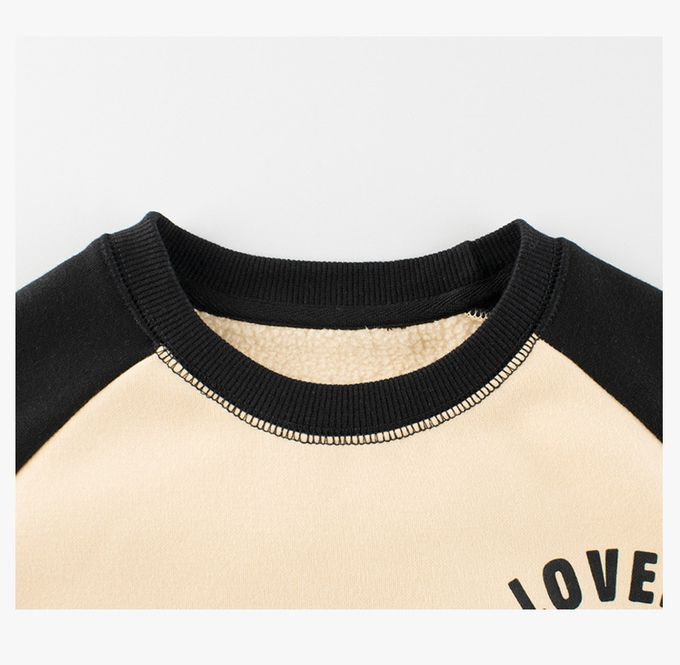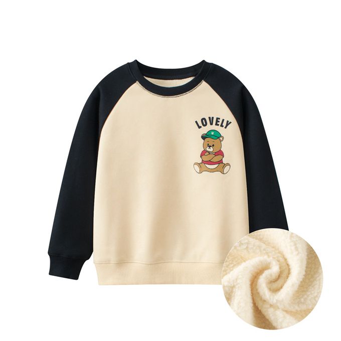 (大童)加絨圓領長袖上衣/大學T-LOVELY熊-米杏/黑色