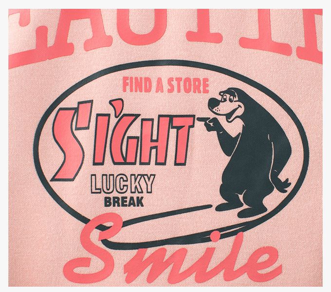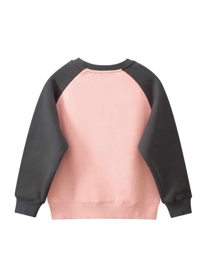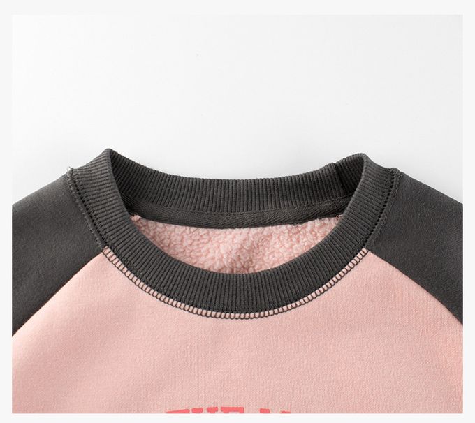 (大童)加絨圓領長袖上衣/大學T-標語印花-粉色/深灰