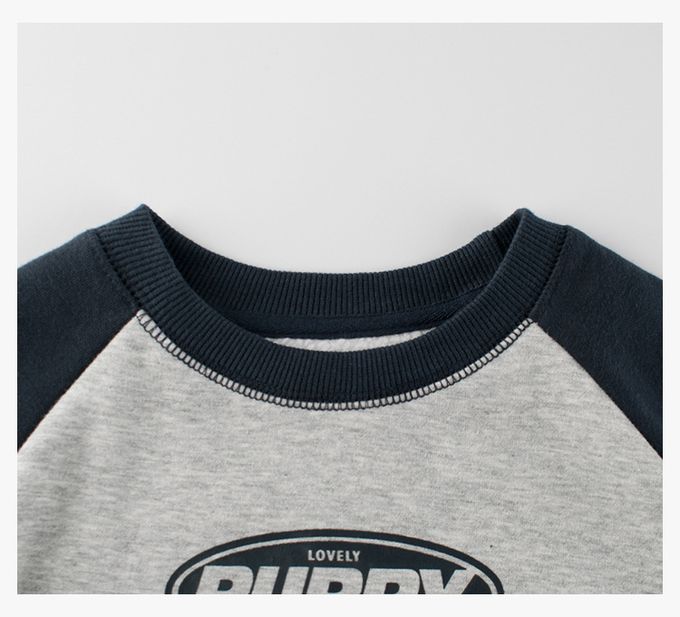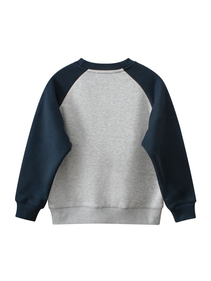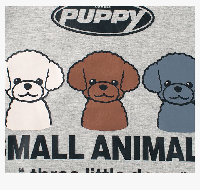(大童)加絨圓領長袖上衣/大學T-三隻小狗-灰色/藏青