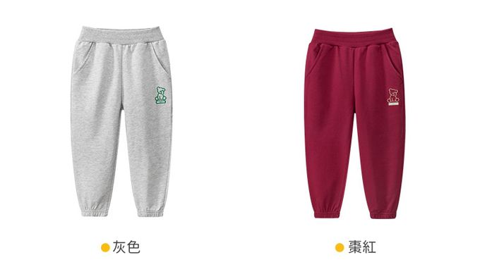 純棉腰鬆緊休閒束口長褲-遮臉熊熊-灰色
