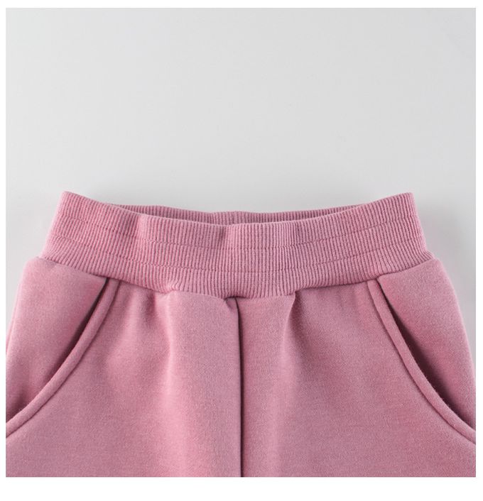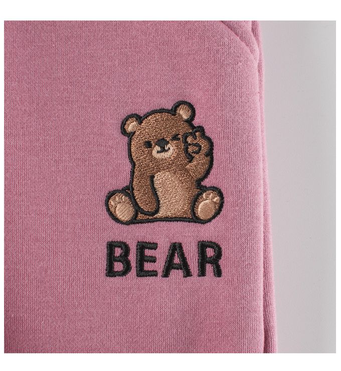 加絨腰鬆緊休閒束口長褲-YA小熊-粉紫