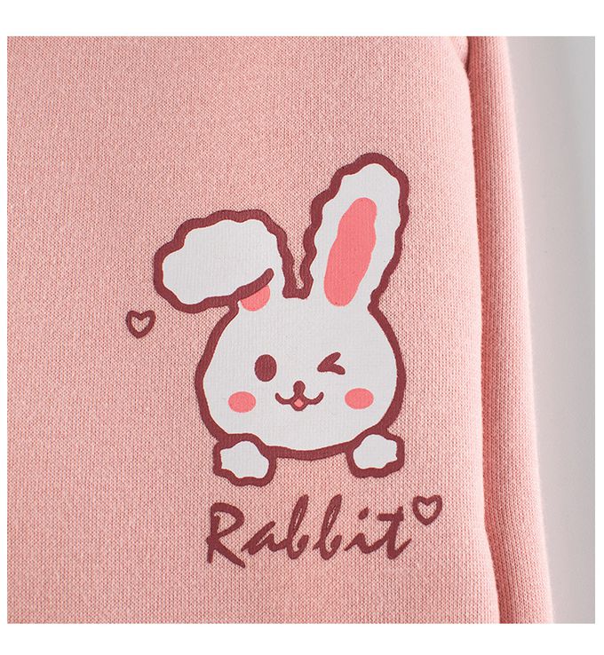 加絨腰鬆緊休閒束口長褲-超萌小兔-粉色