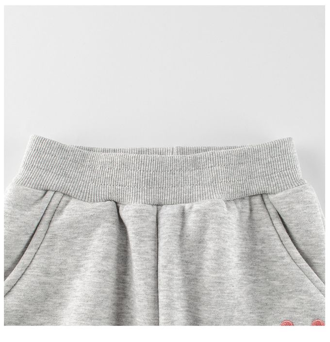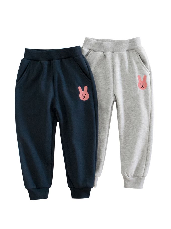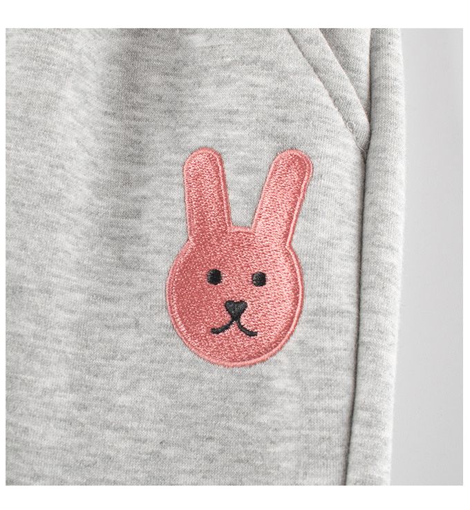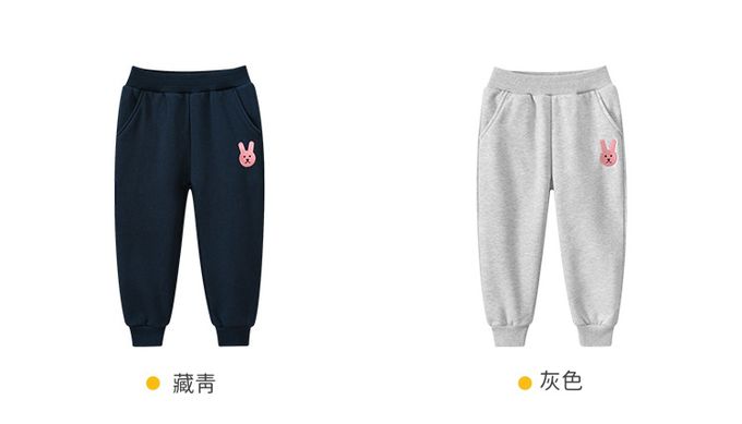 加絨腰鬆緊休閒束口長褲-刺繡兔兔-藏青