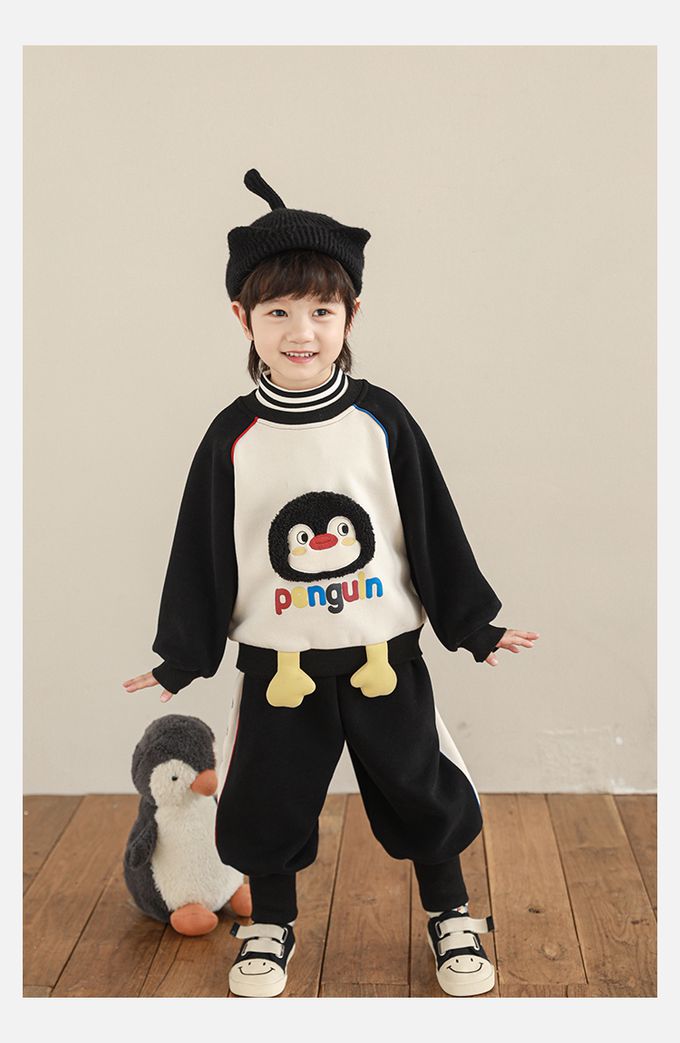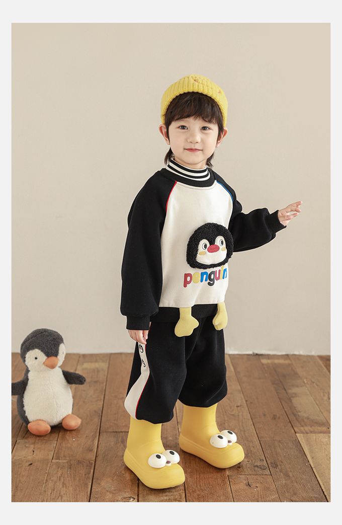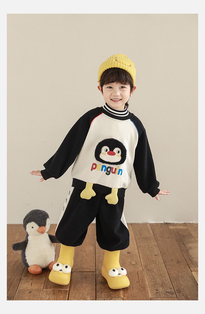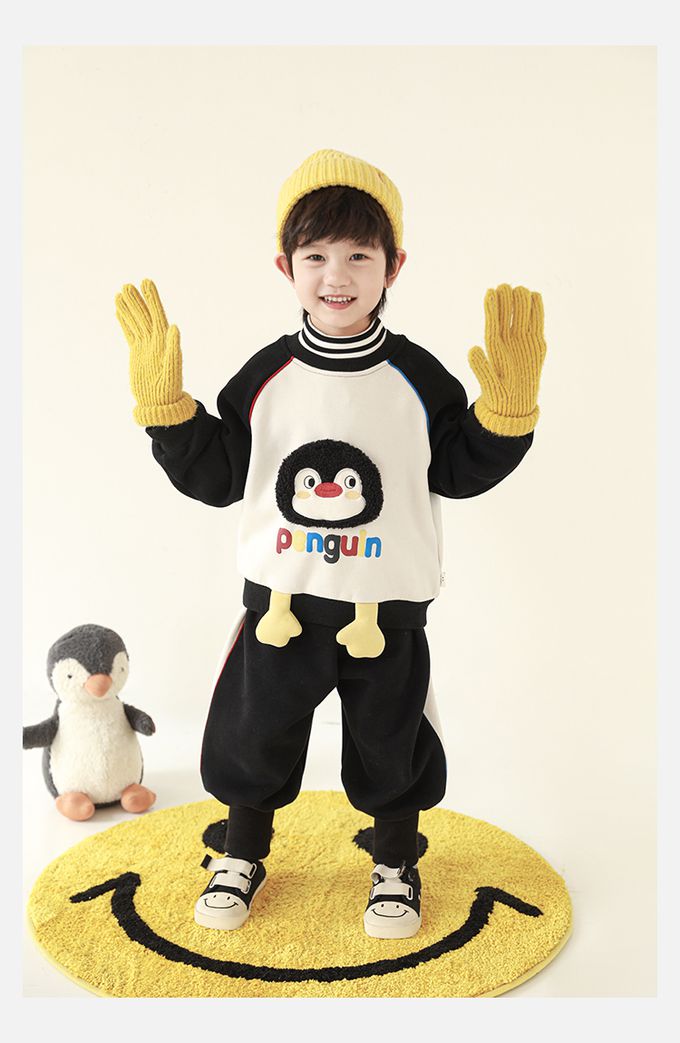 腰鬆緊休閒束口長褲(加絨)-可愛小企鵝