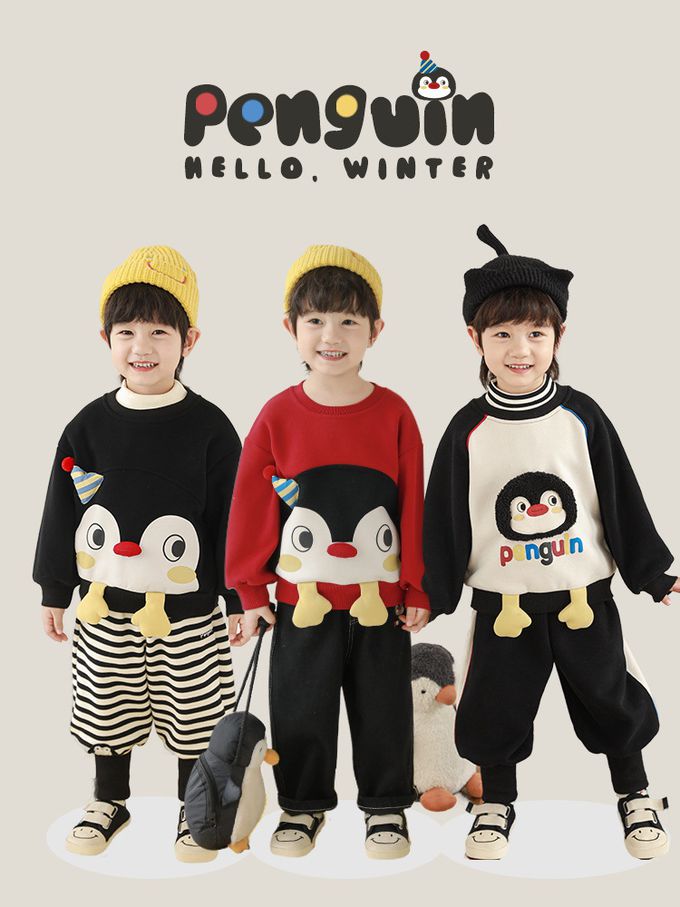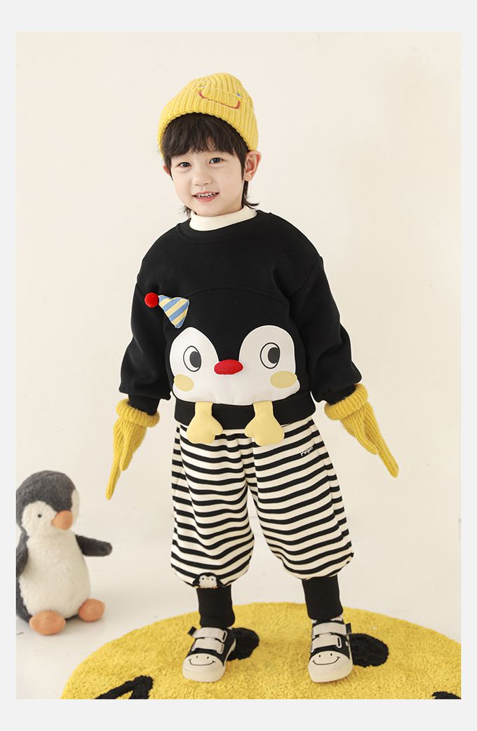 腰鬆緊休閒束口長褲(加絨)-可愛小企鵝