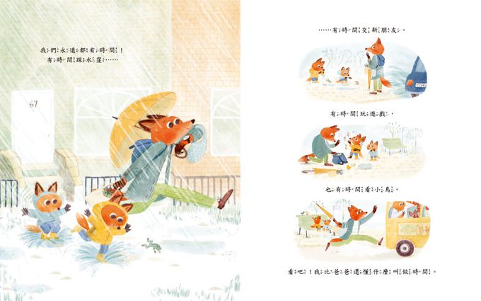 「一本關於時間概念的好書。我女兒很喜歡狐狸一家人。」