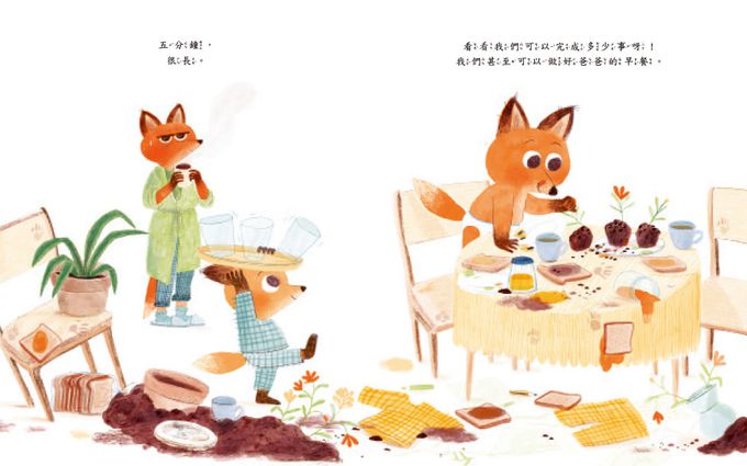 親子閱讀間,很適合藉此溝通彼此對這些情景的看法,可以讓孩子說說自己的想法與真實情緒,父母也可以對孩子解釋,面對這些情況時,為什麼要這麼要求與限制,有哪些考量點,讓親子藉機闡述各自對時間的概念。