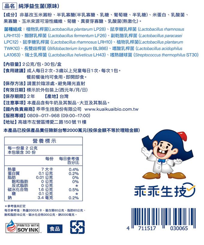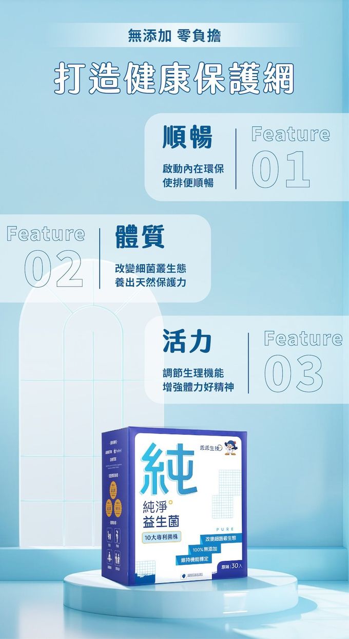 ▪️ 穩定 ⎮ LRH113 消化道長駐菌種 高耐酸耐鹼穩定性更高▪️ 有感 ⎮ 集合10大有效菌株 2種PLUS保養更有感▪️ 純淨 ⎮ 不含794項食品添加物▪️ 全齡 ⎮ 兒童、孕婦皆可安心食用 ▪️ 每盒 30 小條,每條 2 公克,不含甜味劑