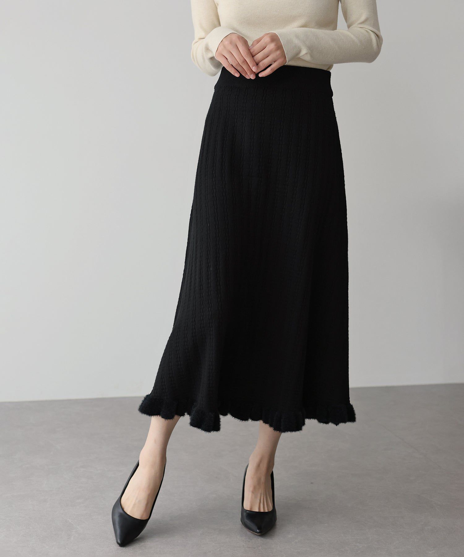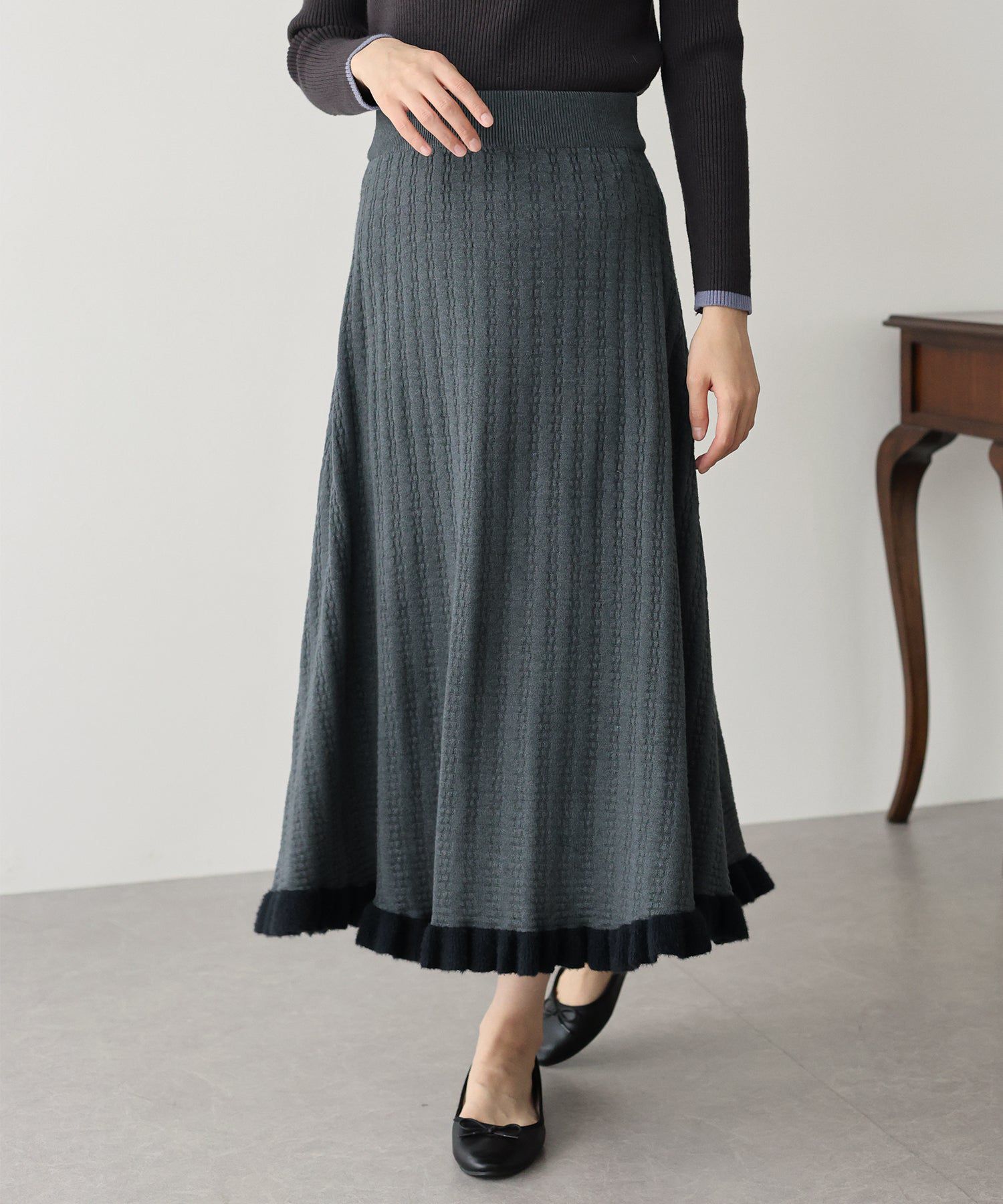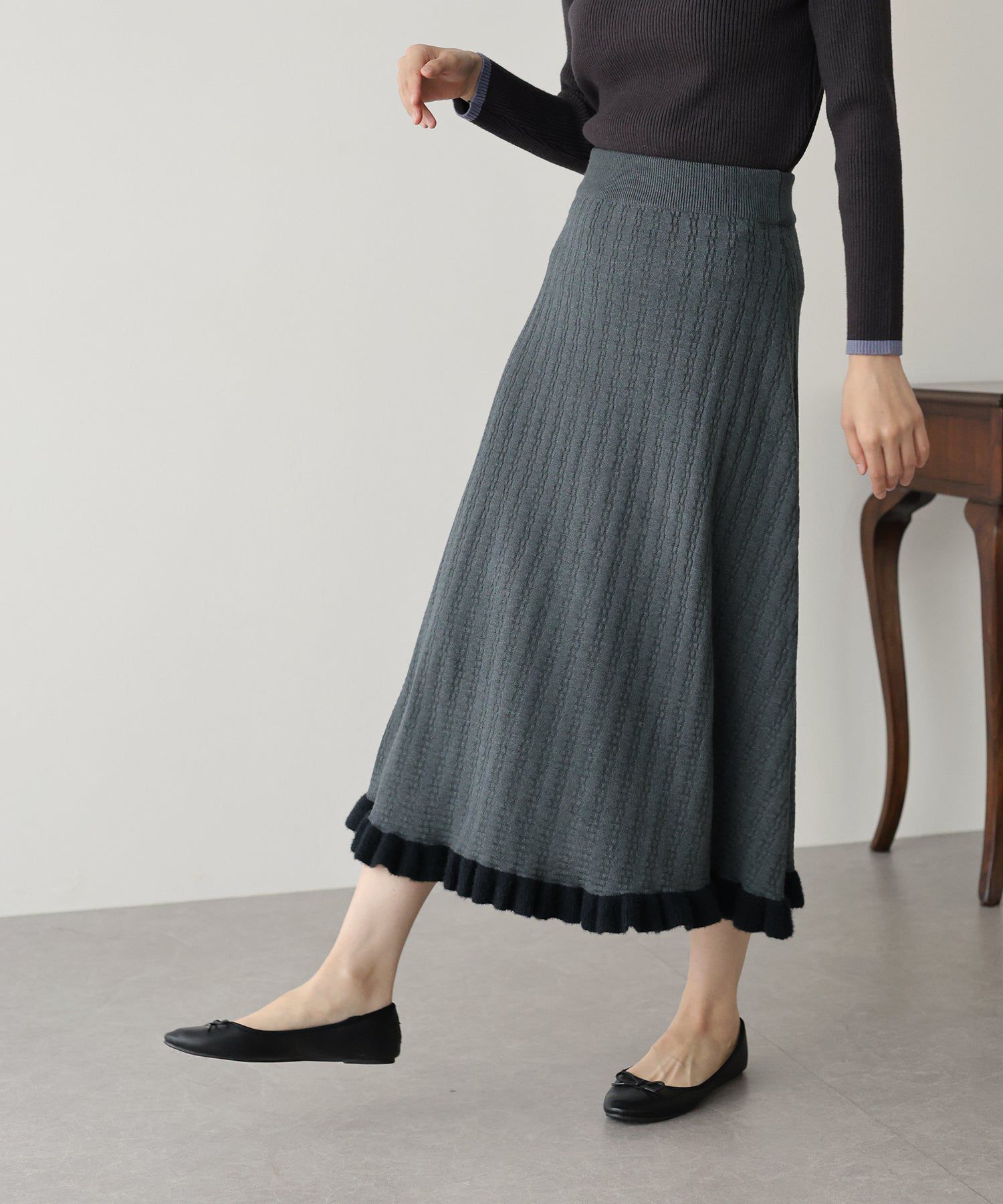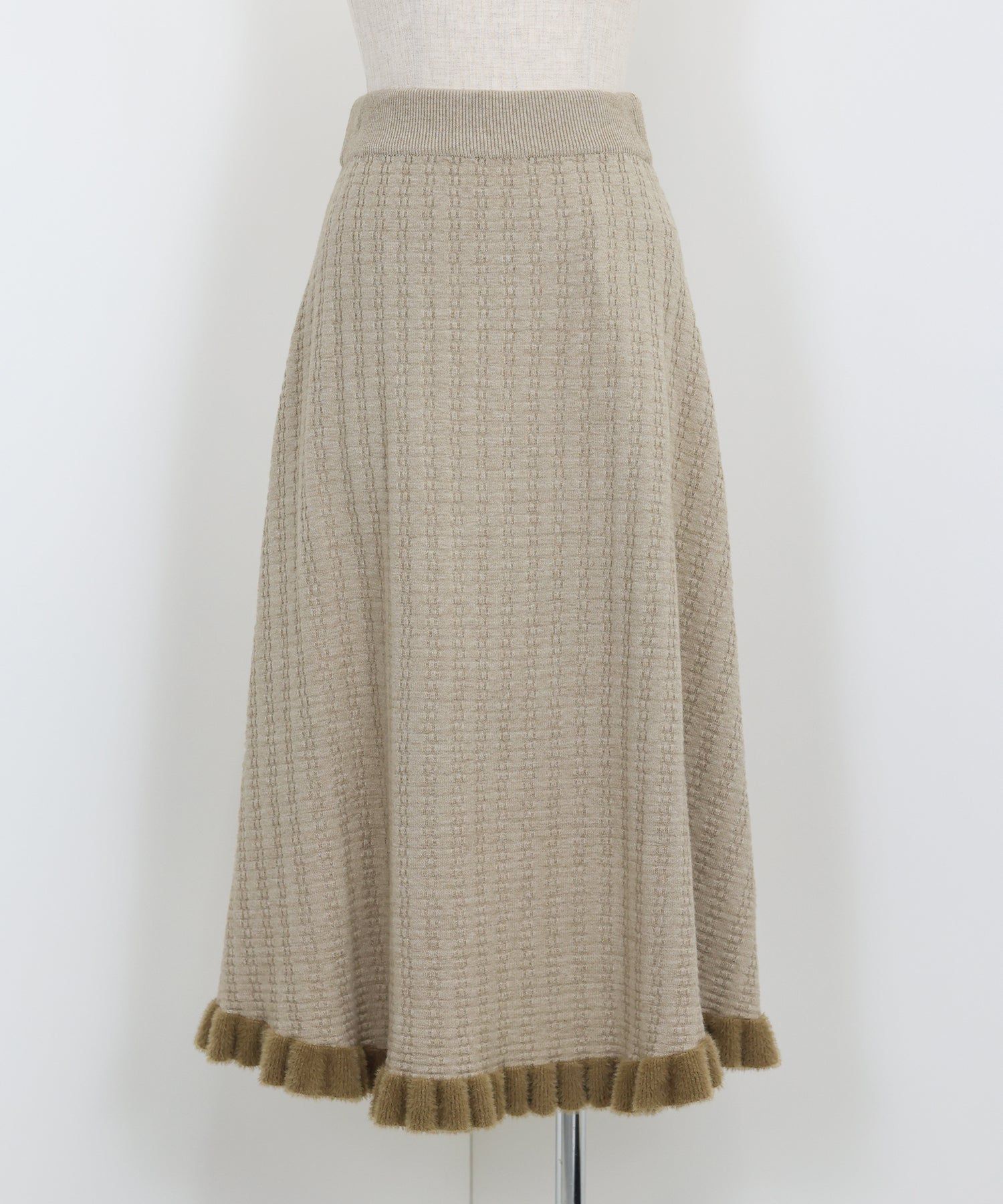 日本 BLUE EAST - 下擺荷葉彈性緹花針織長裙-米杏