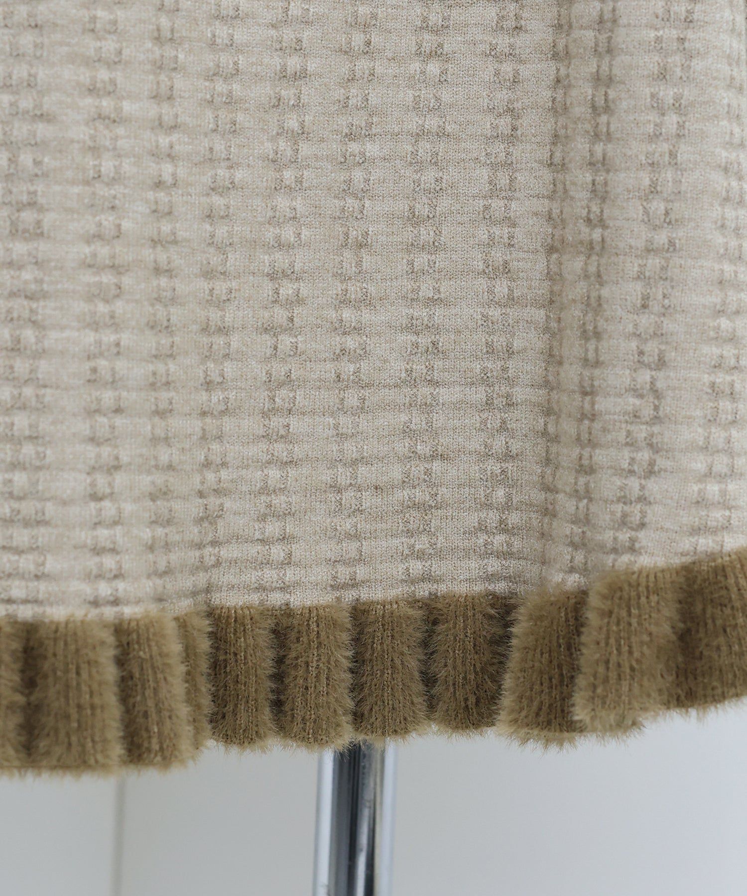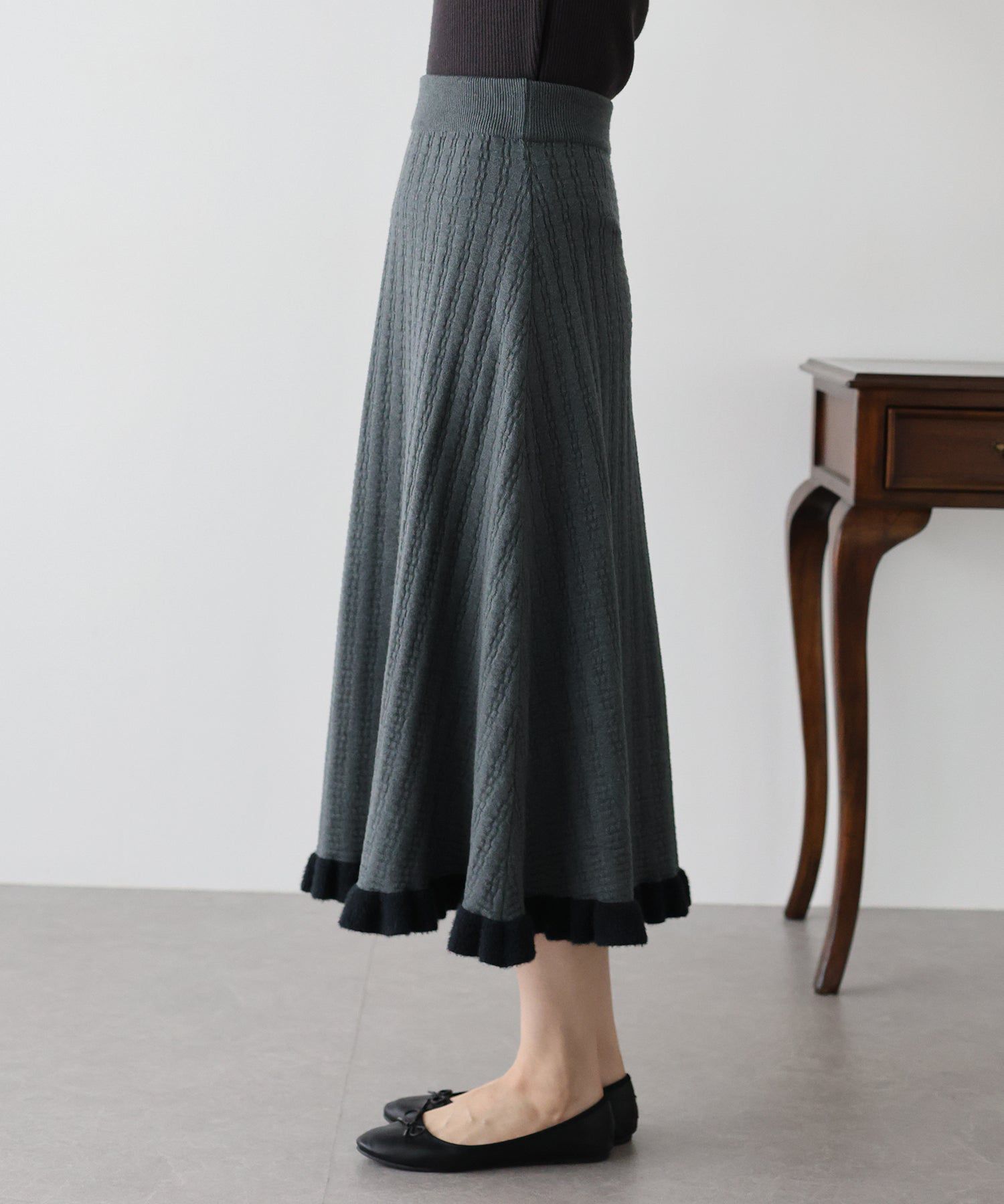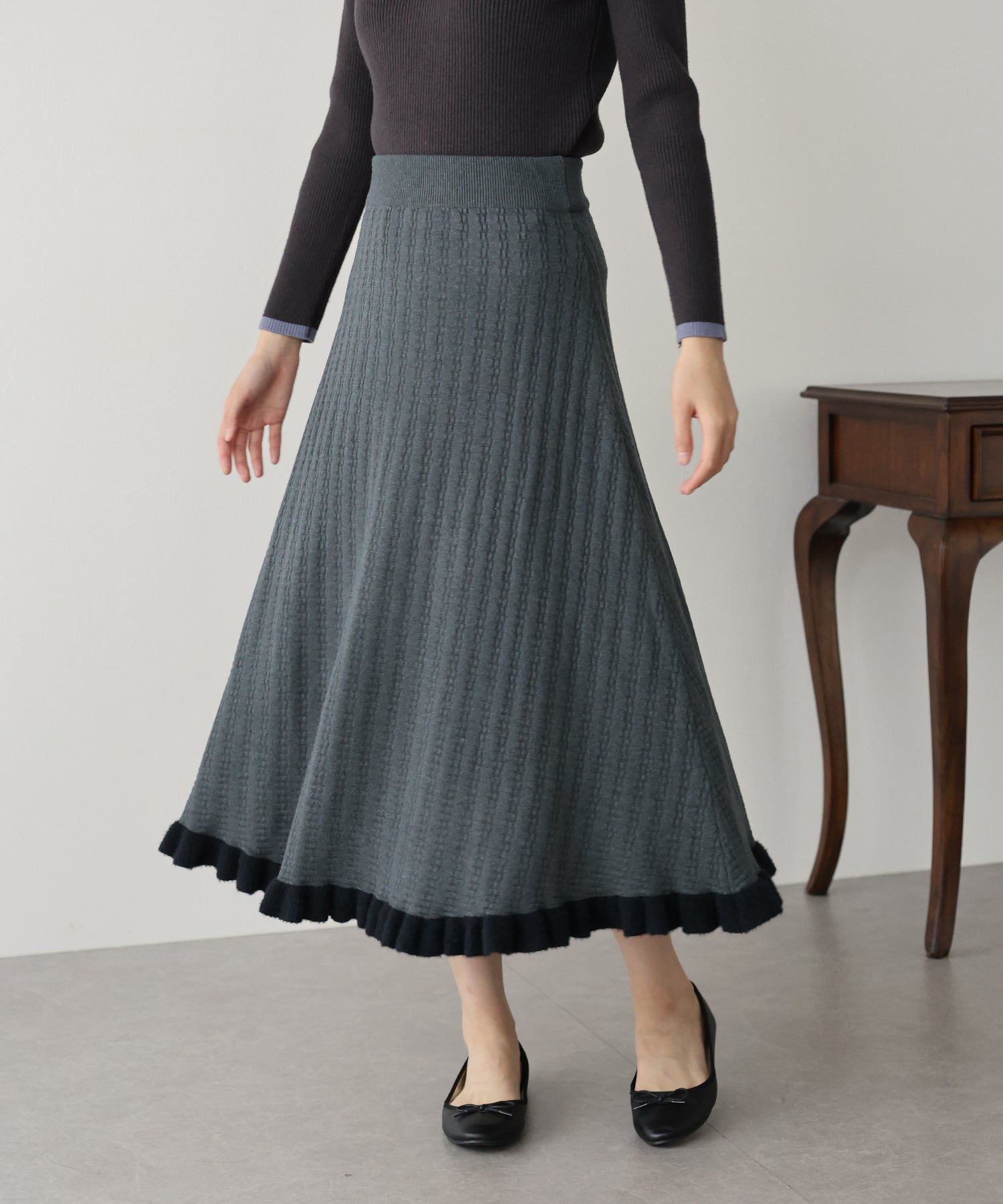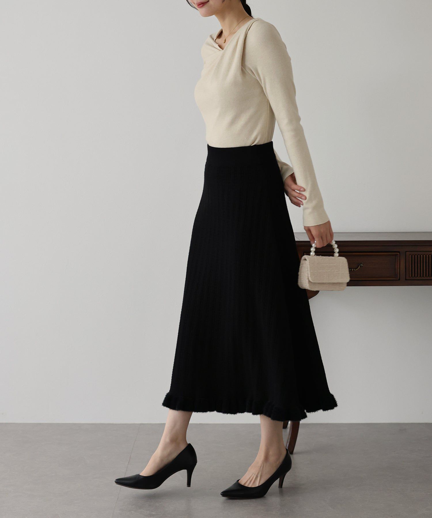日本 BLUE EAST - 下擺荷葉彈性緹花針織長裙-米杏
