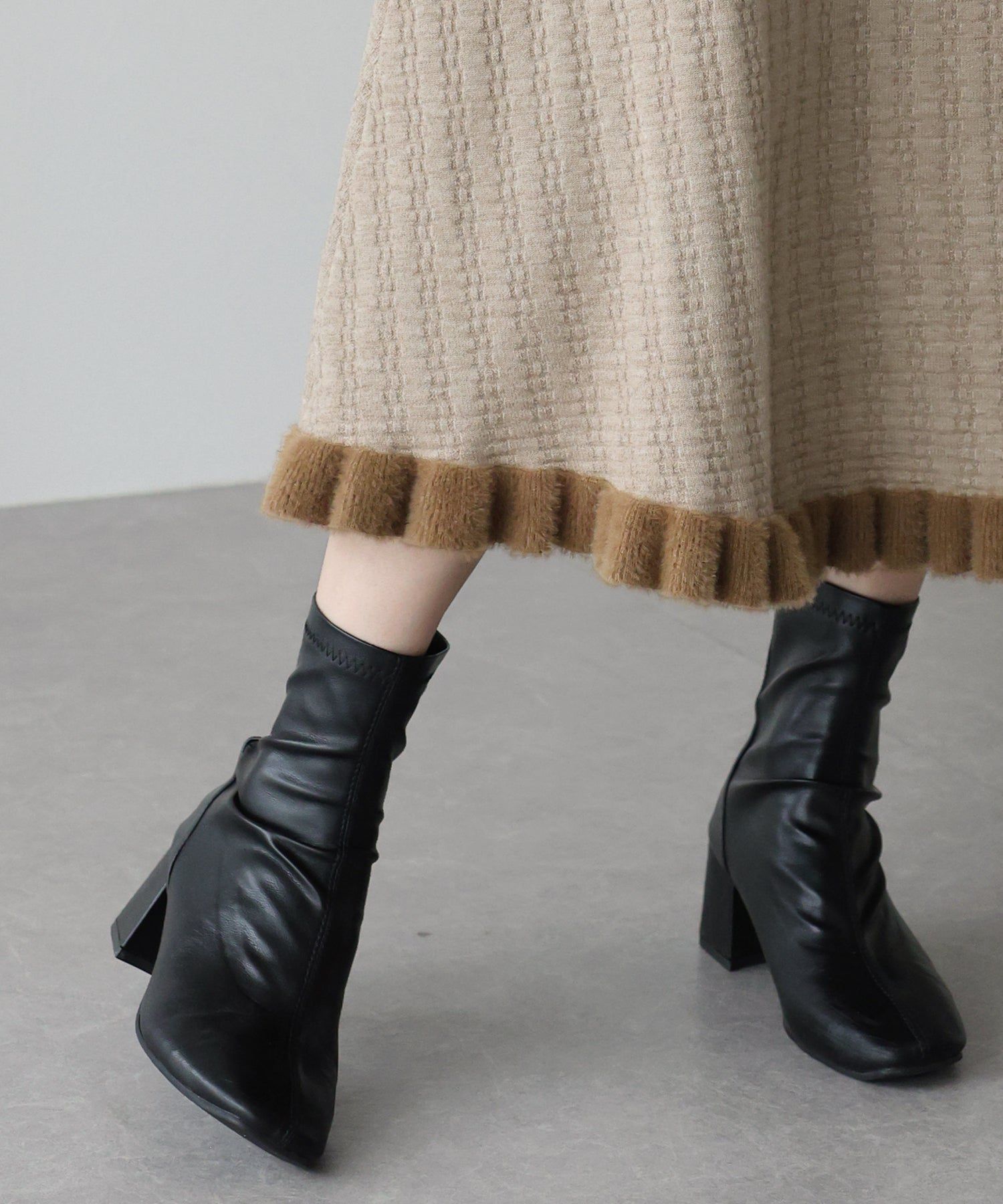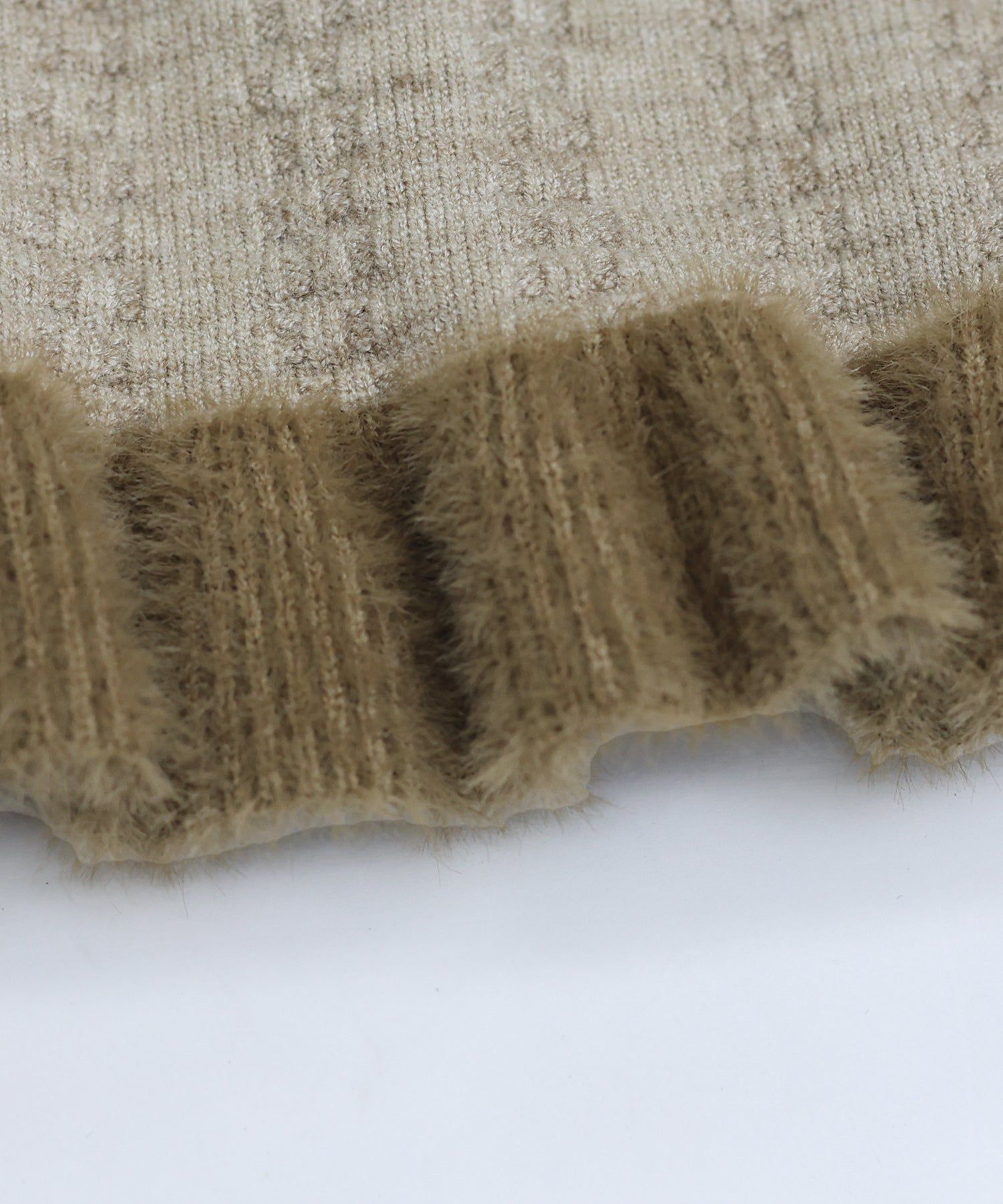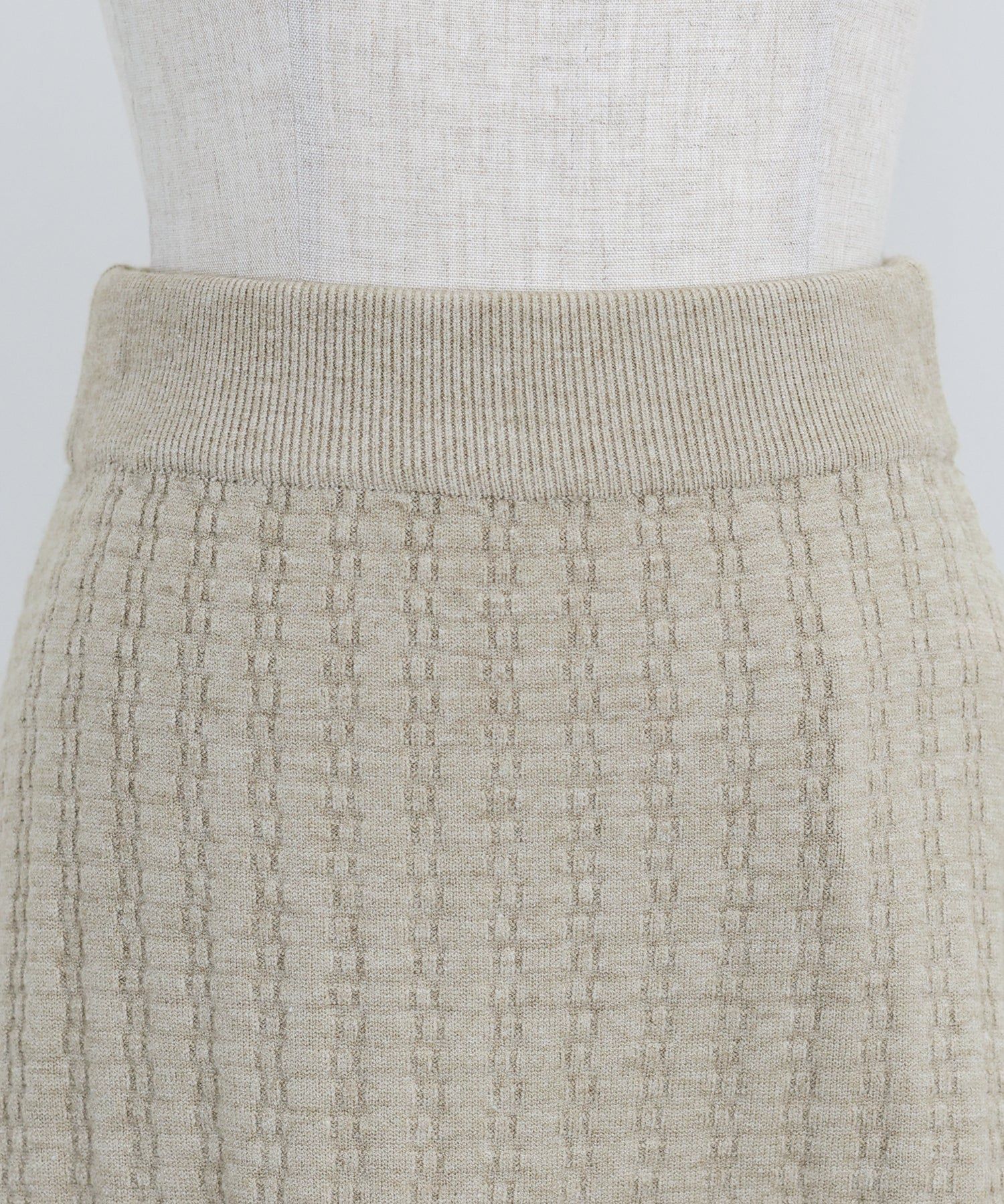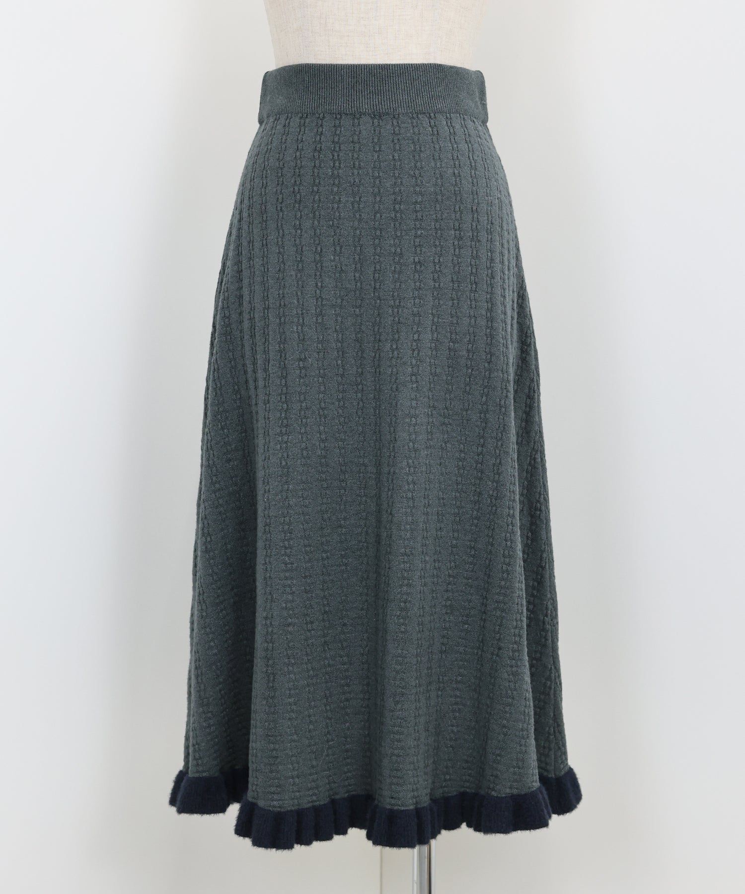 日本 BLUE EAST - 下擺荷葉彈性緹花針織長裙-米杏
