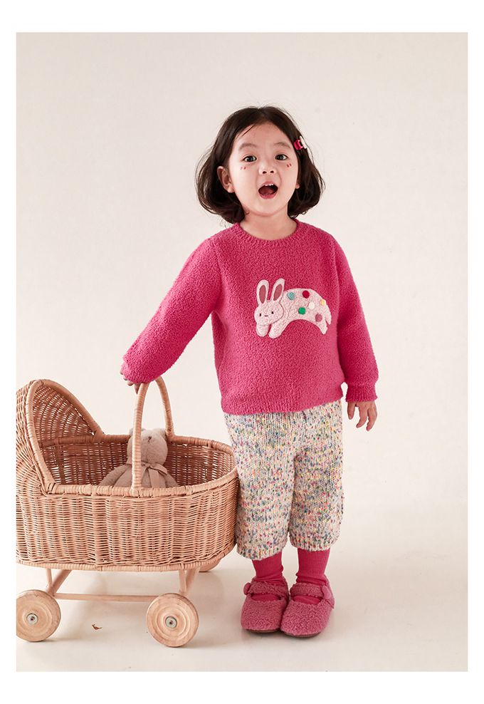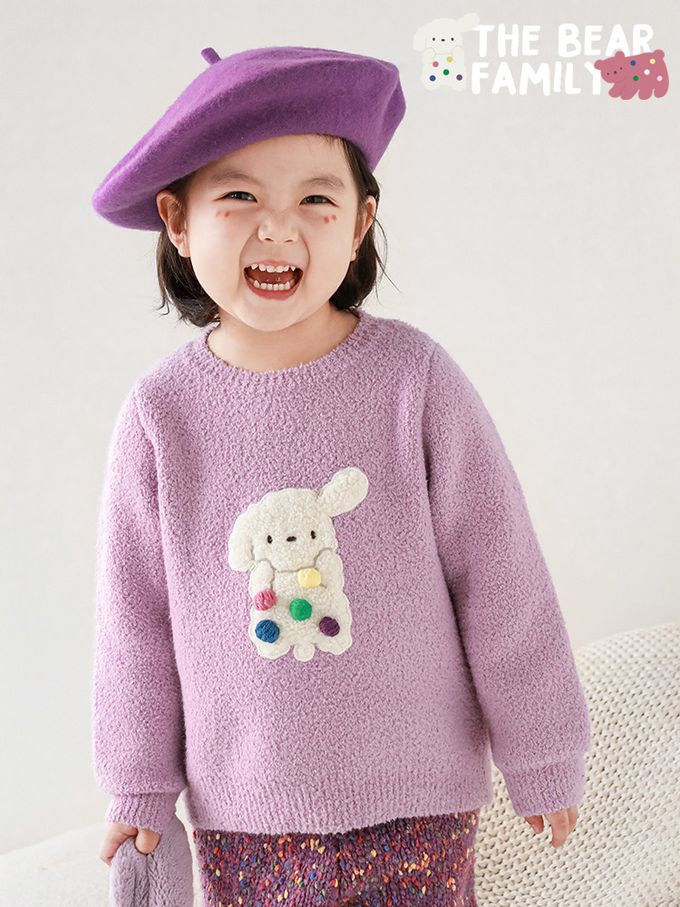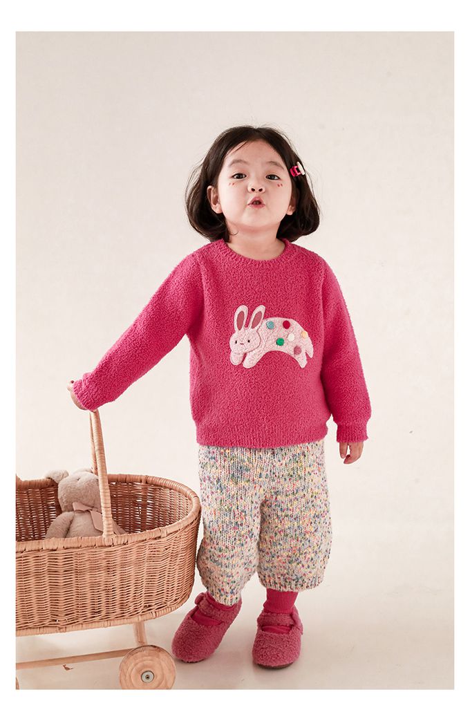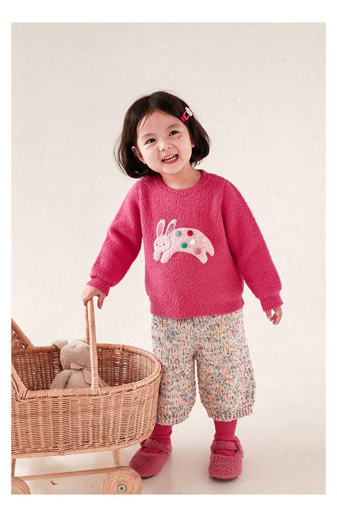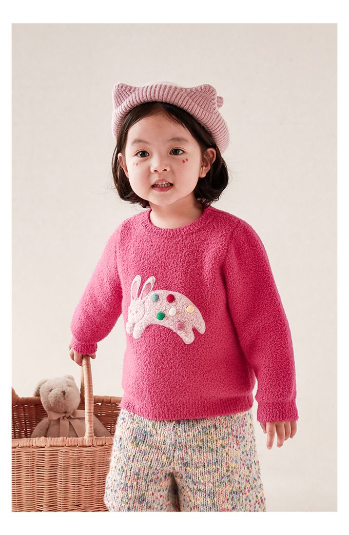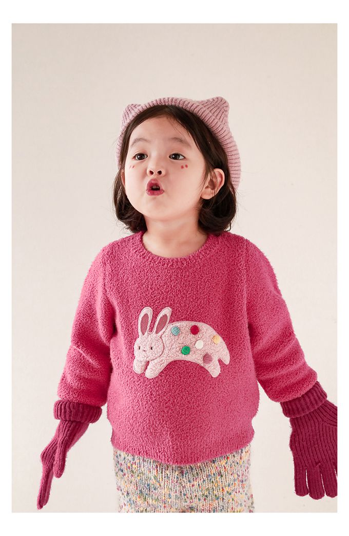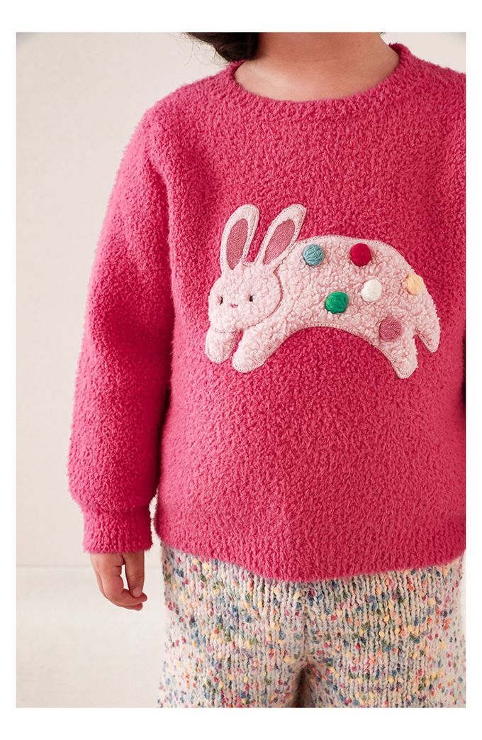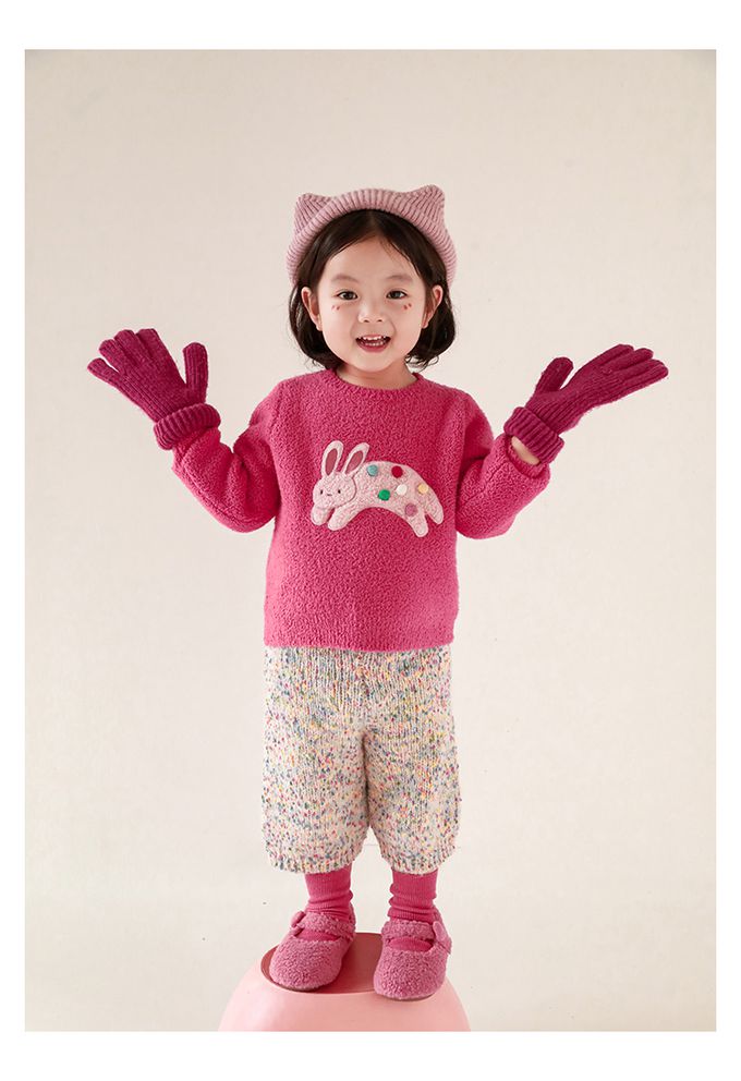 TONGMO - 圓領針織長袖上衣-毛茸茸童趣貼布繡-玫紅色
