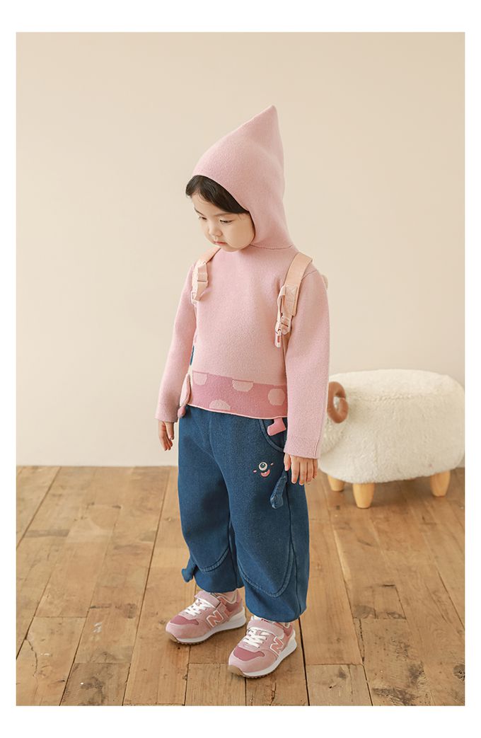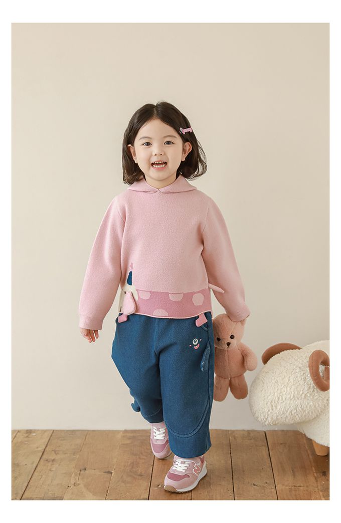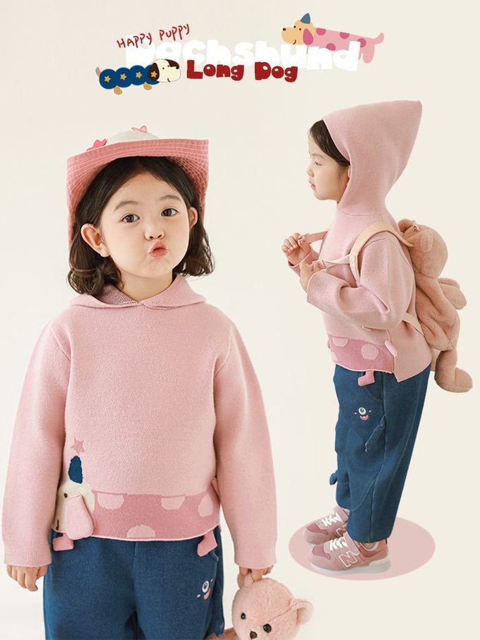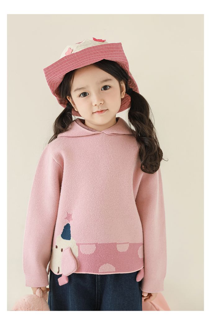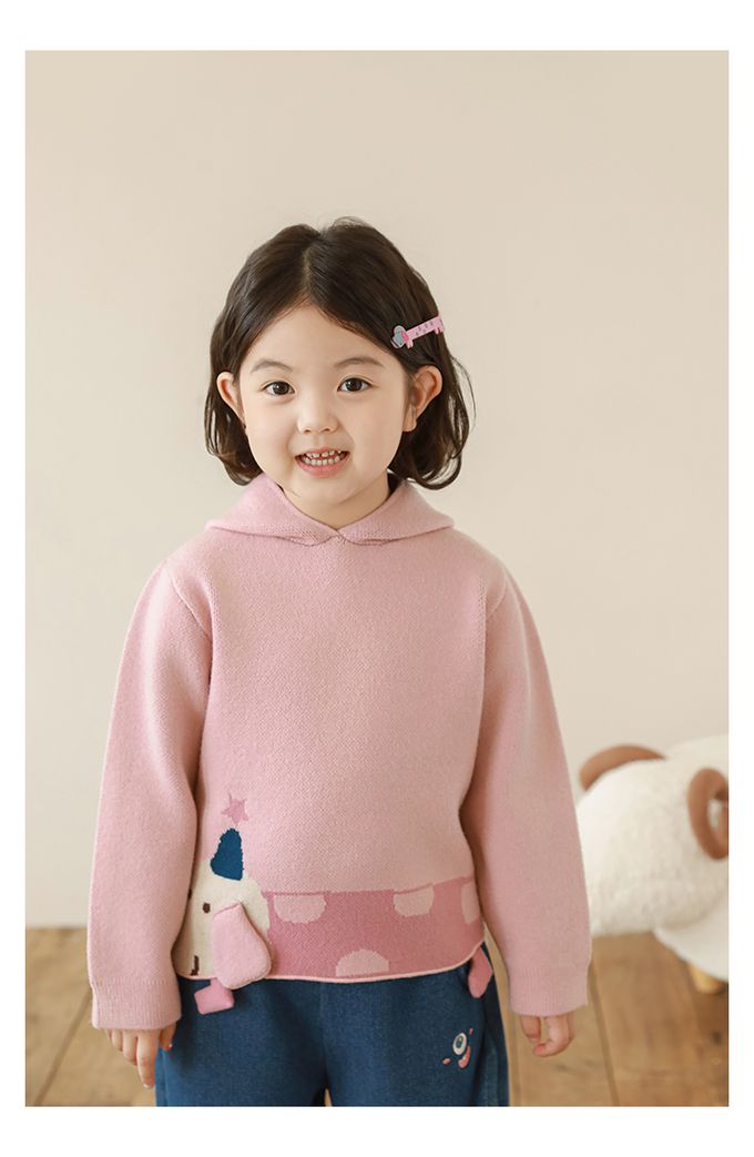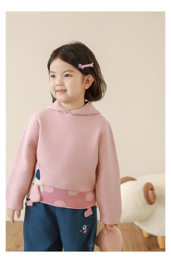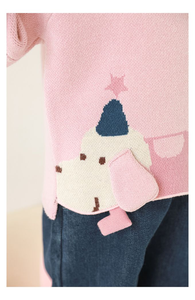TONGMO - 童話精靈連帽長袖針織上衣-糖果狗狗-粉色