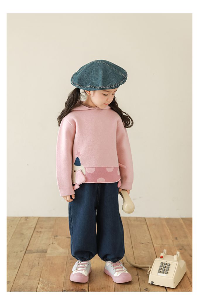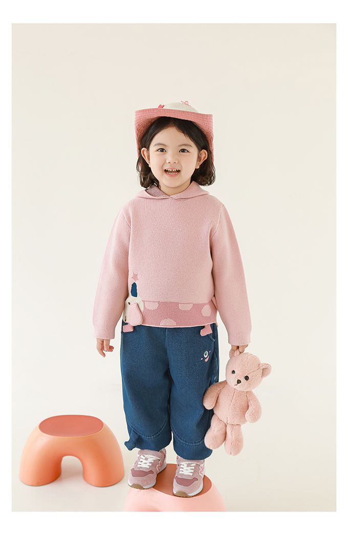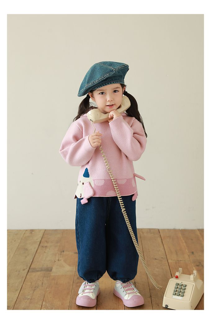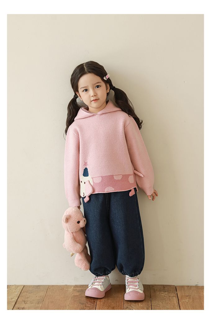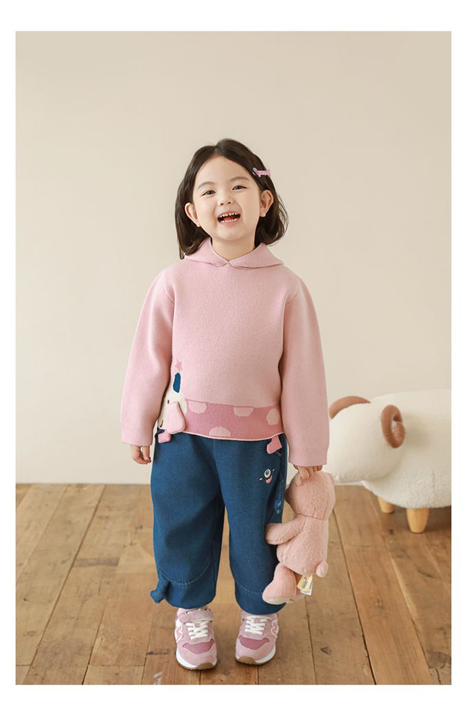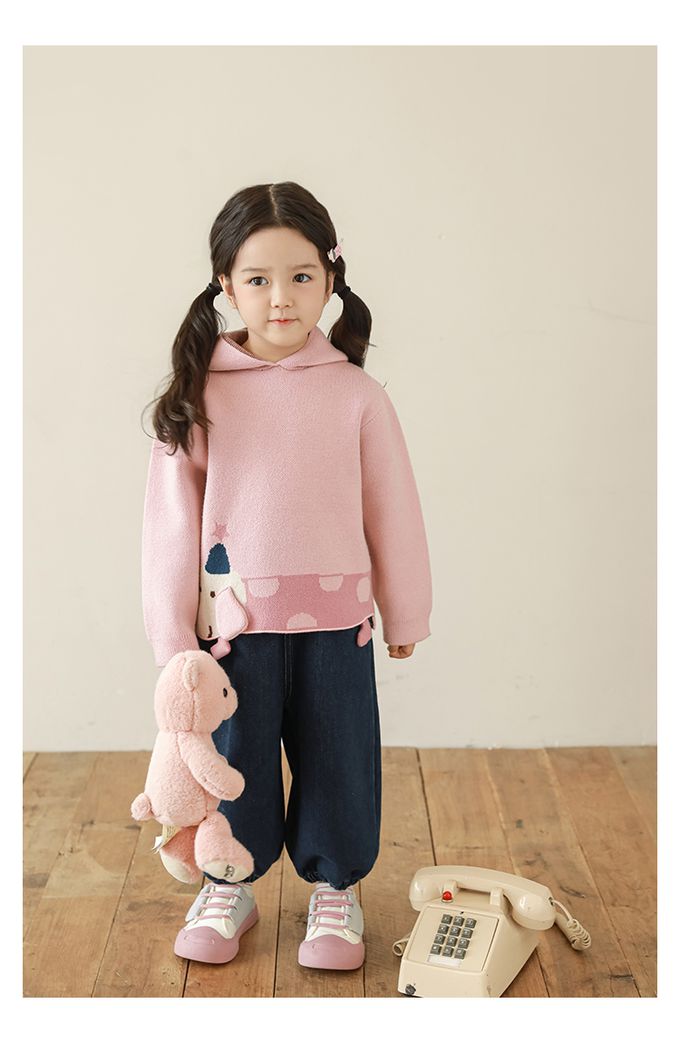 TONGMO - 童話精靈連帽長袖針織上衣-糖果狗狗-粉色