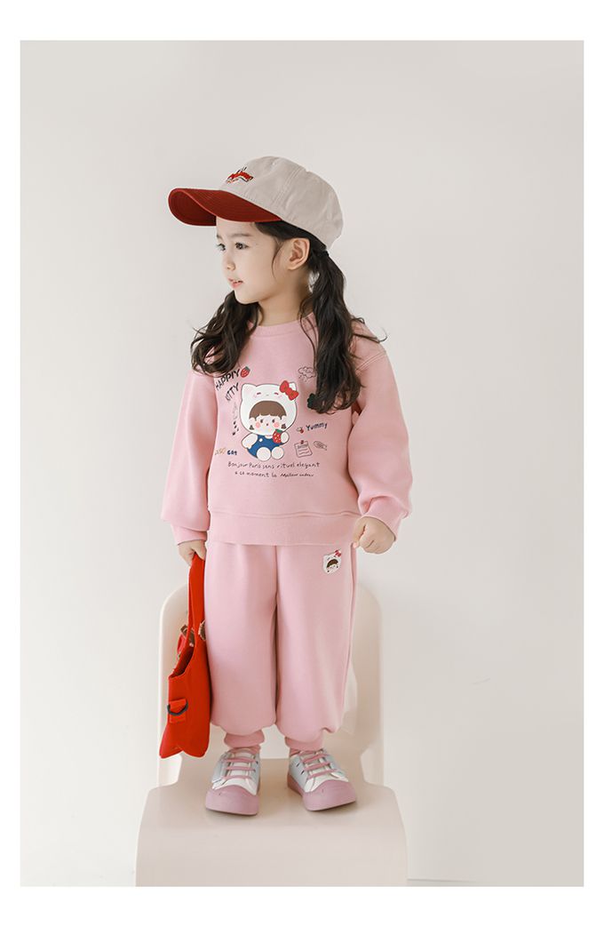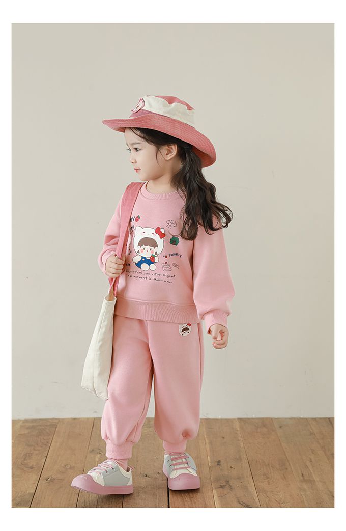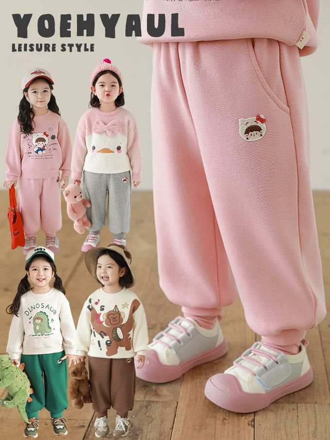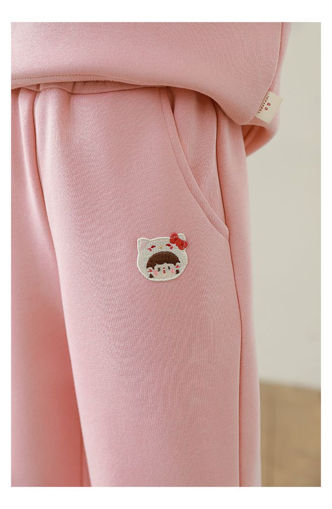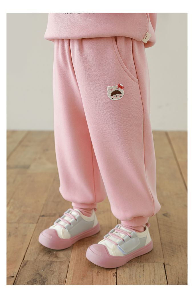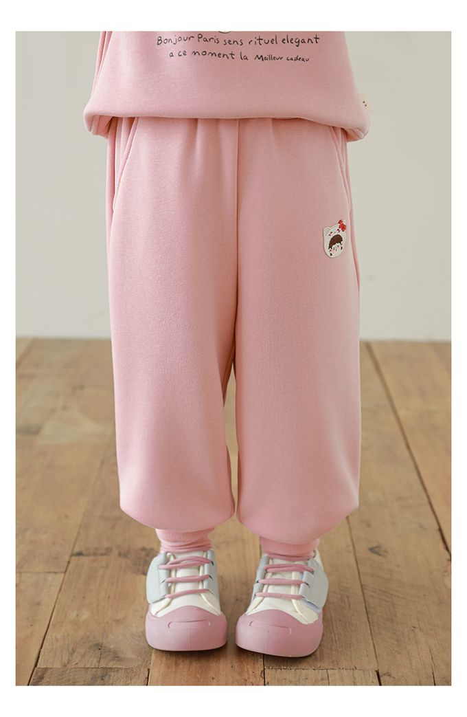 腰鬆緊百搭休閒束口長褲(加絨)-甜美女孩-粉色