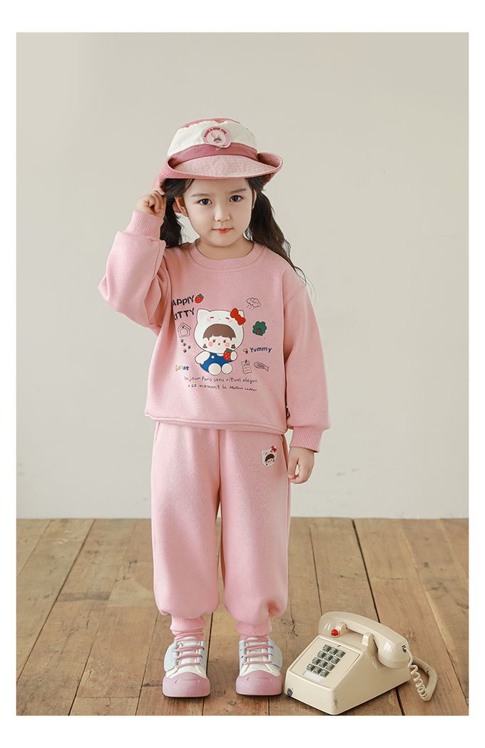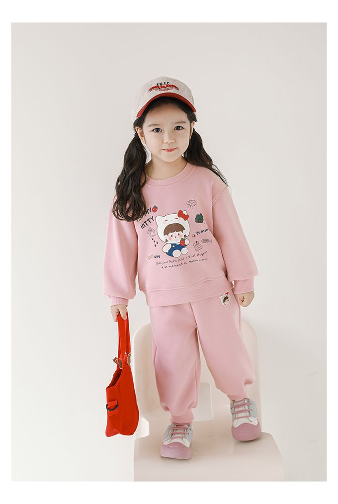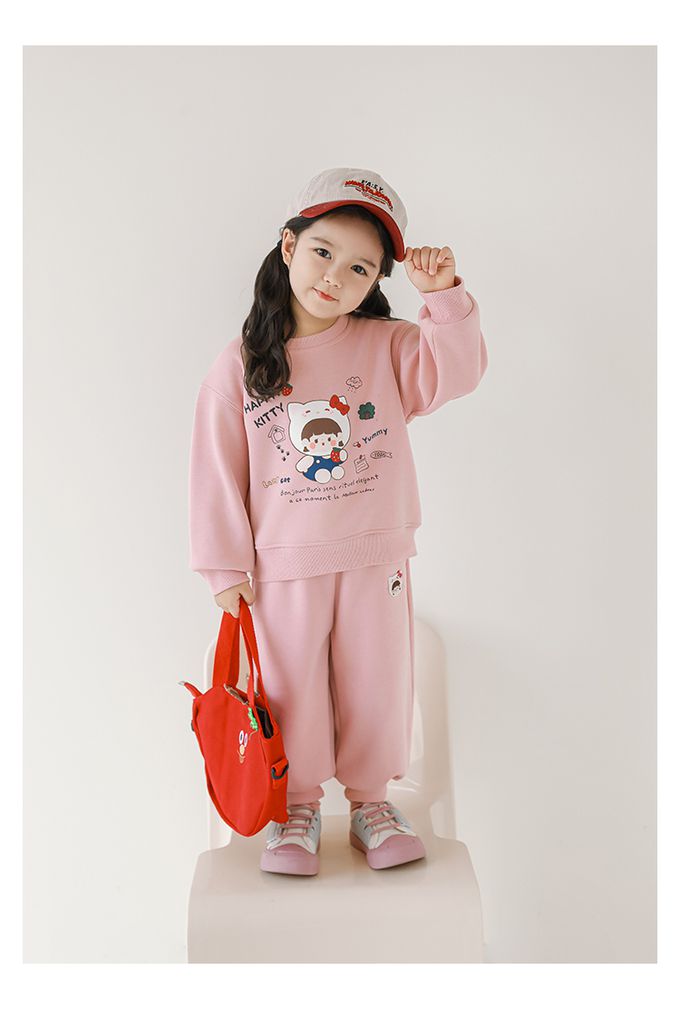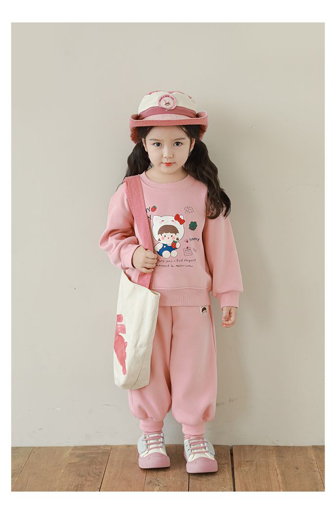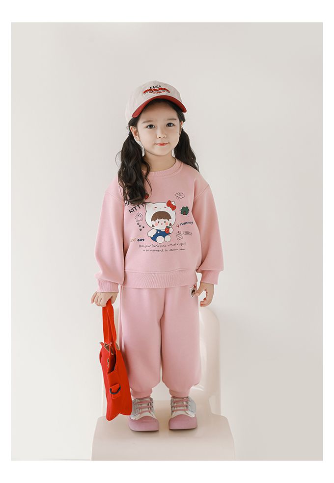 腰鬆緊百搭休閒束口長褲(加絨)-甜美女孩-粉色