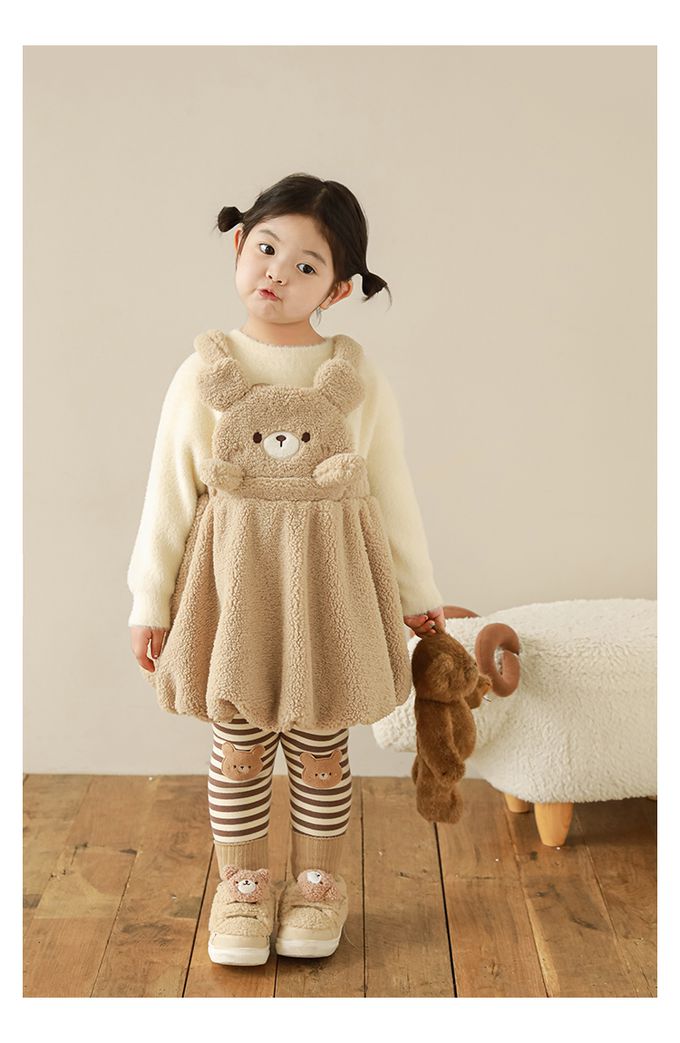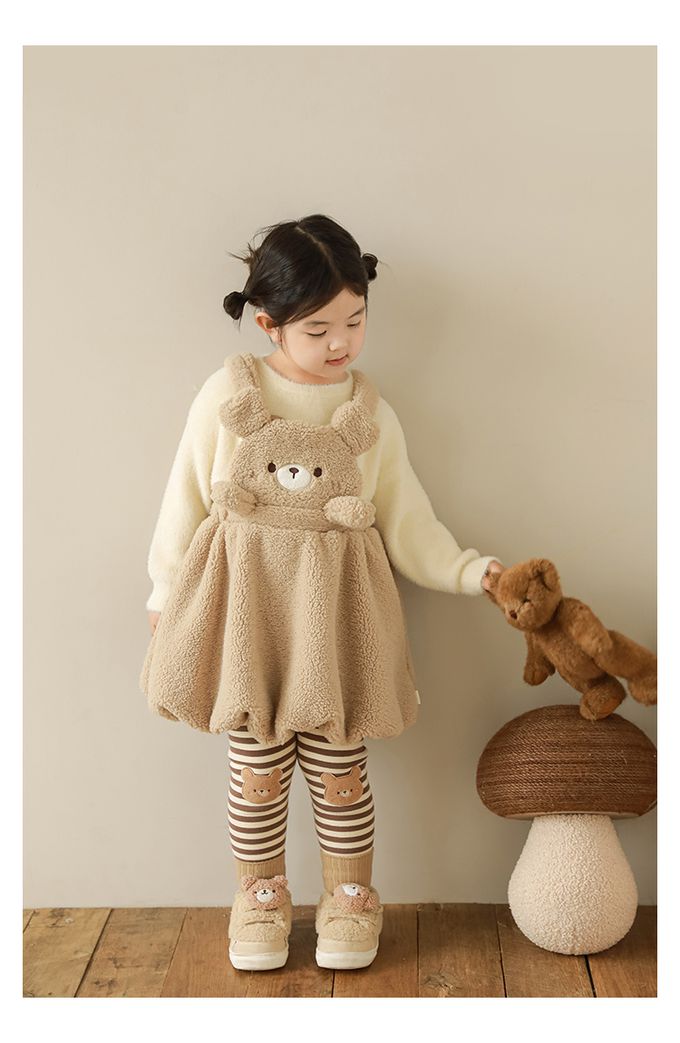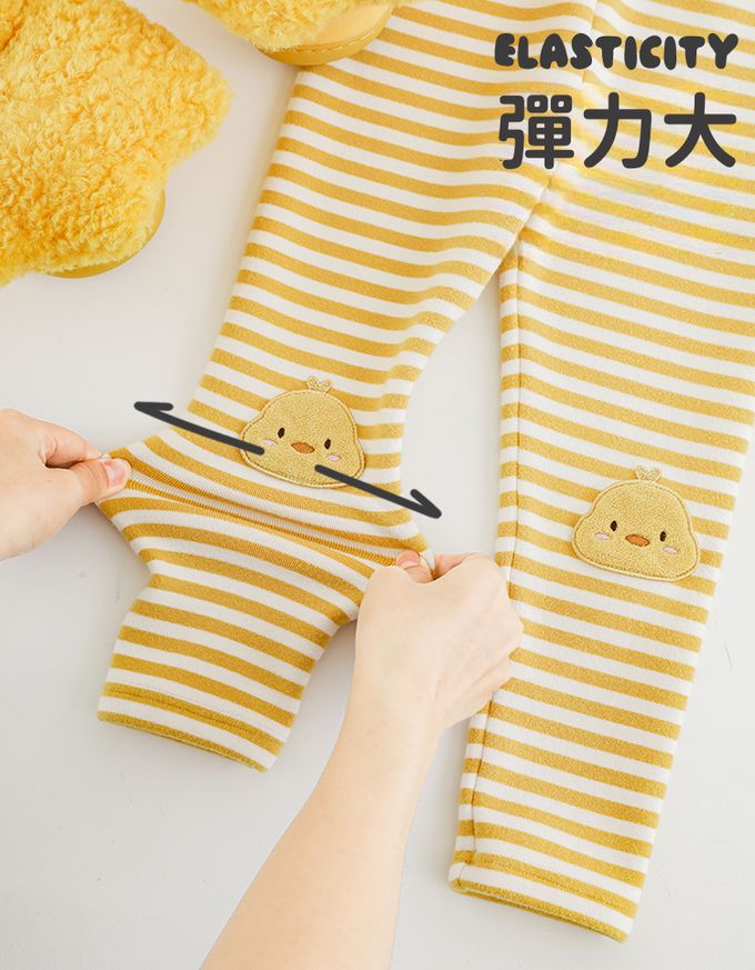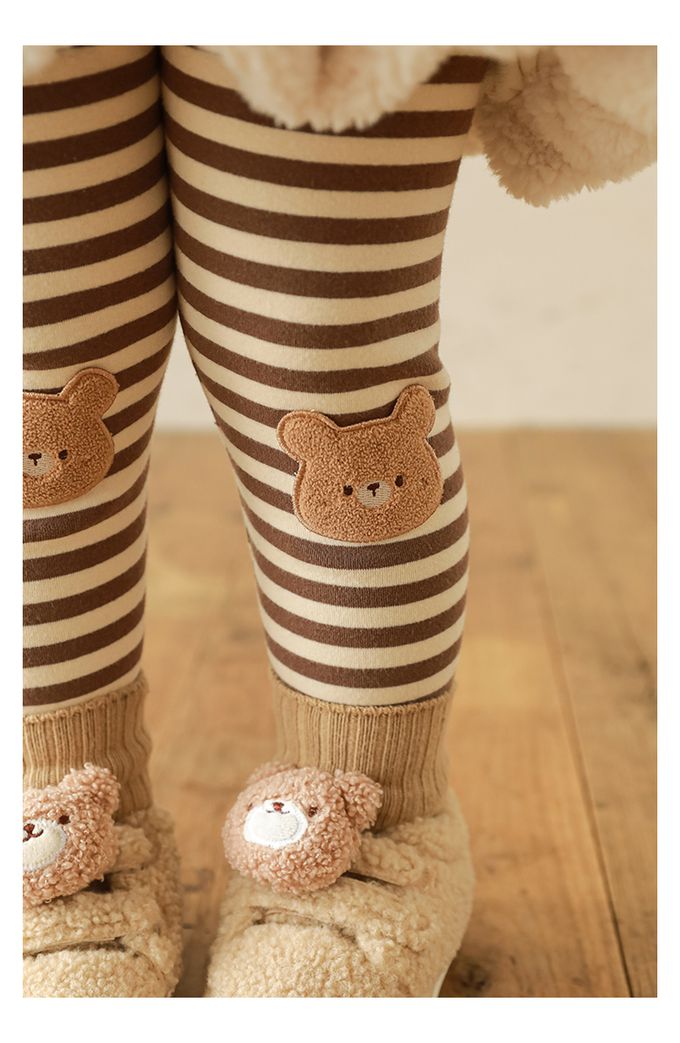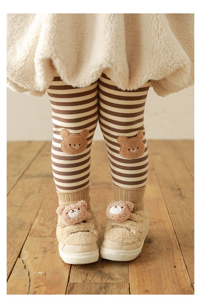 腰鬆緊條紋內搭長褲(加絨)-熊熊-咖色