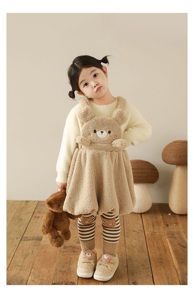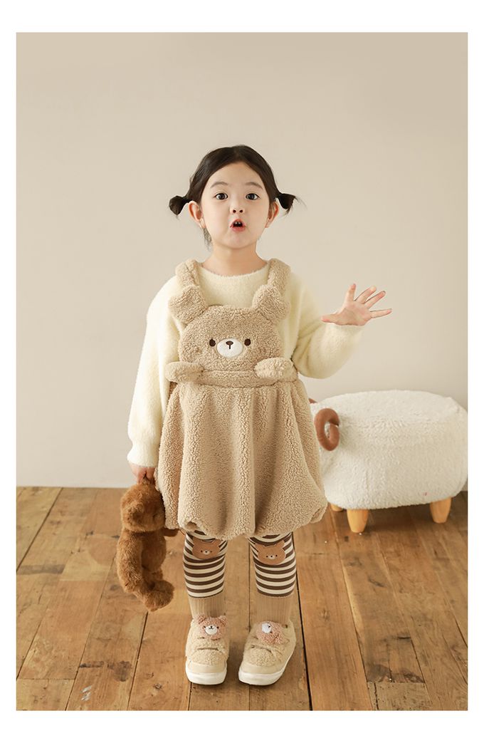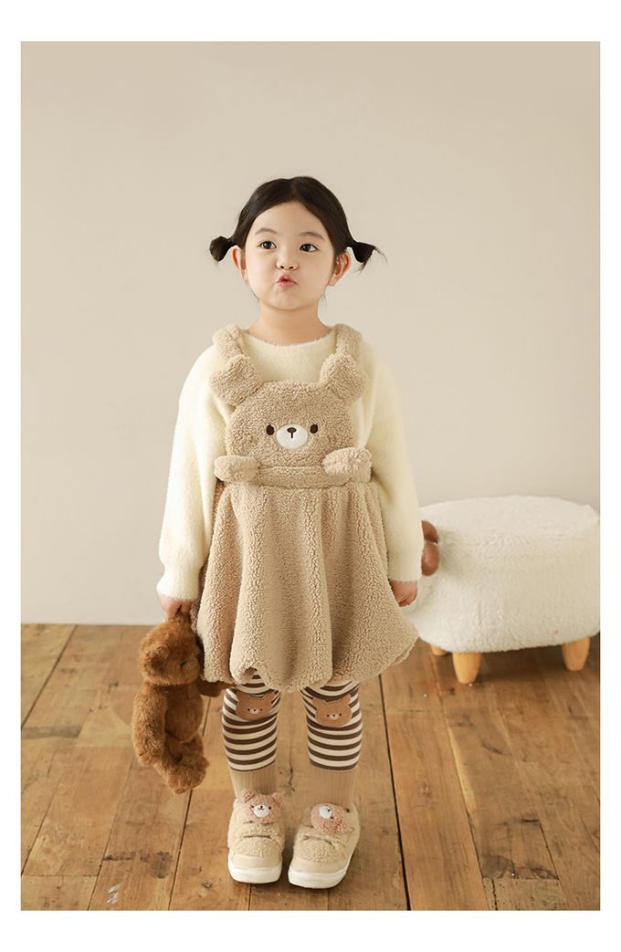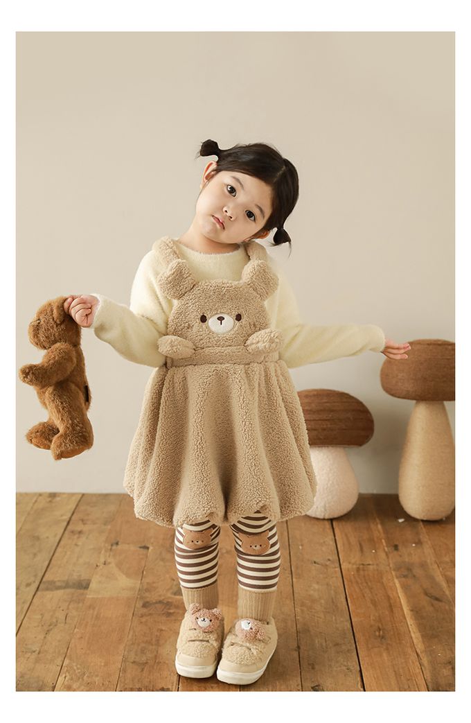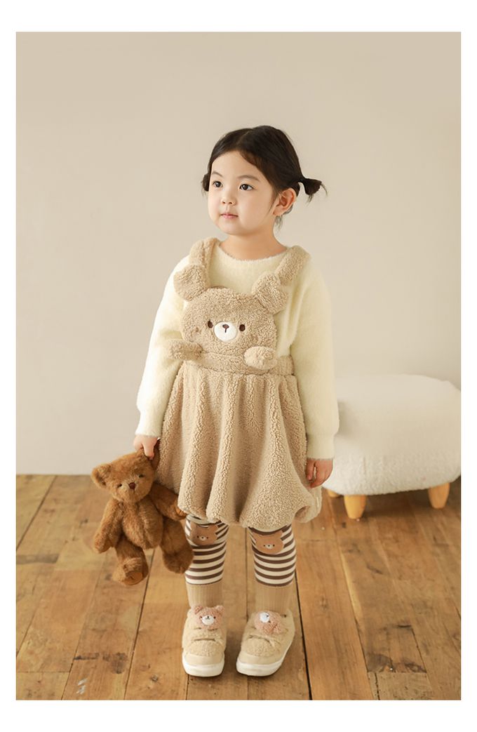 腰鬆緊條紋內搭長褲(加絨)-熊熊-咖色