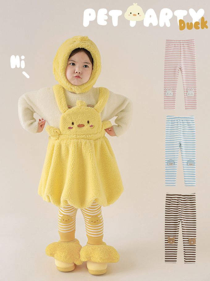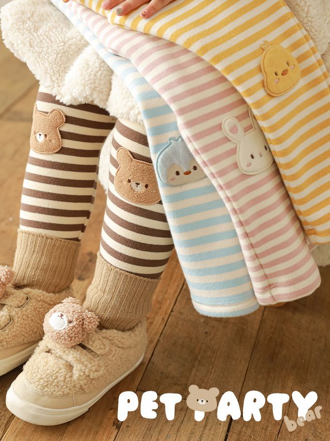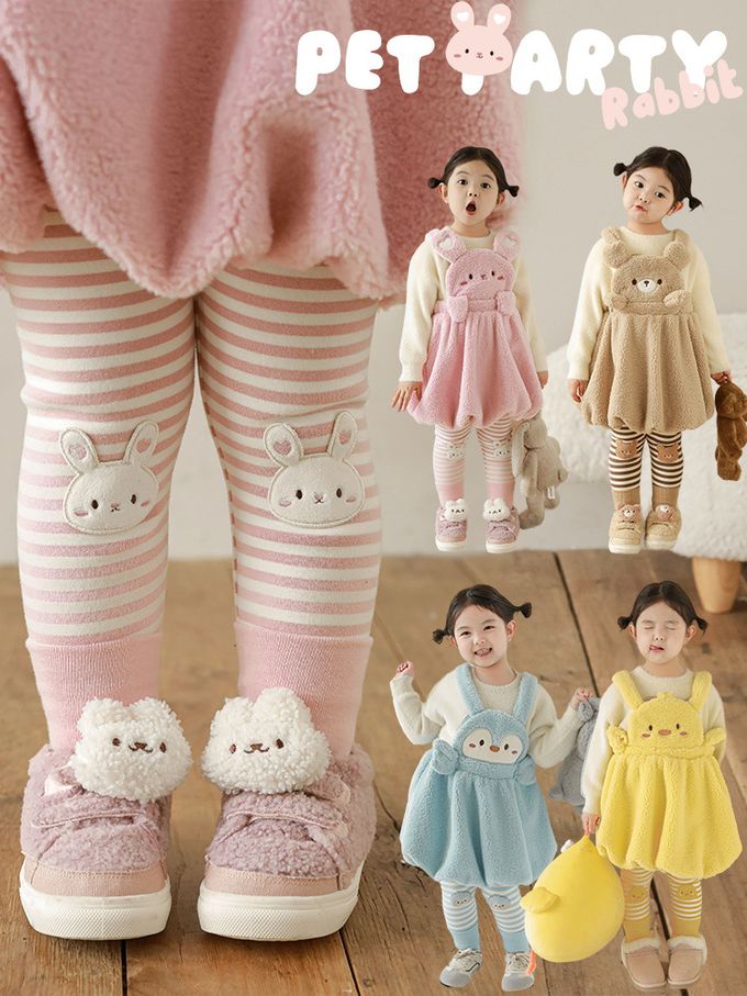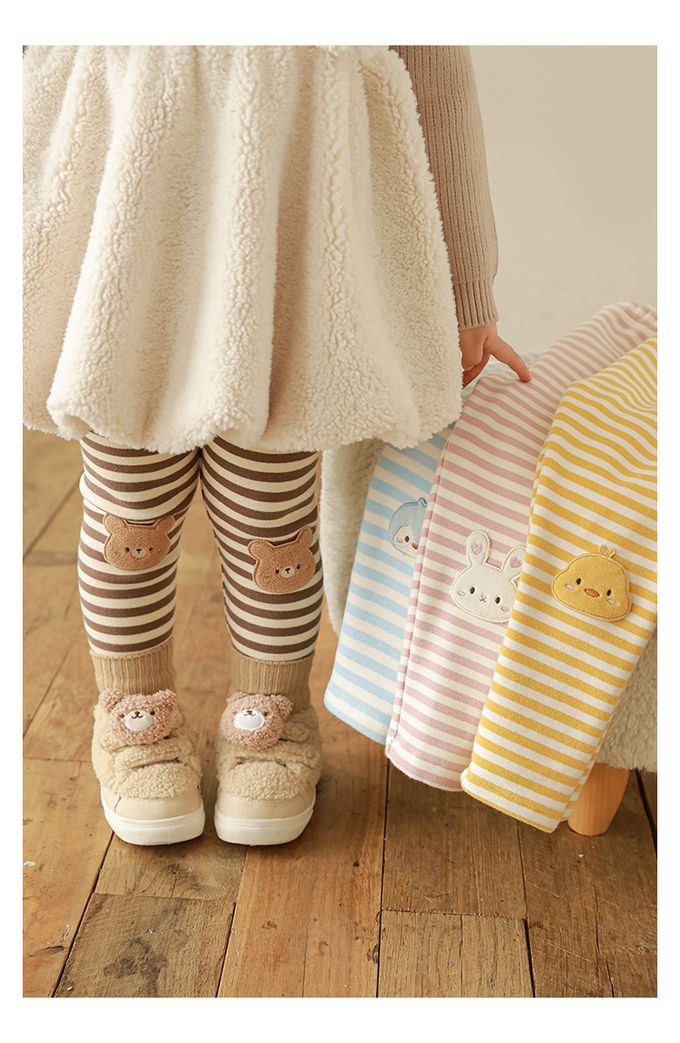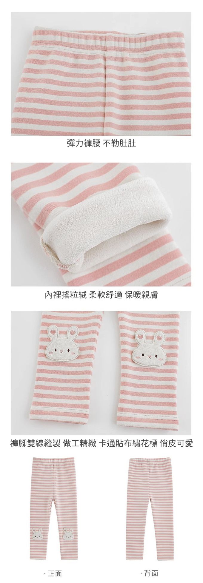 TONGMO - 腰鬆緊條紋內搭長褲(加絨)-兔子-粉色