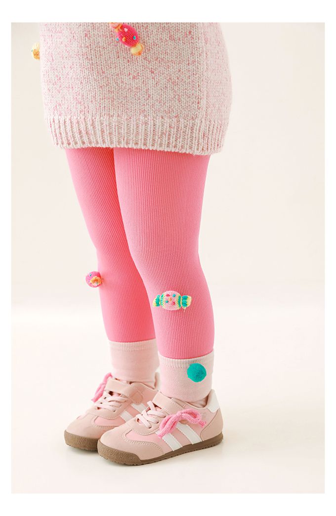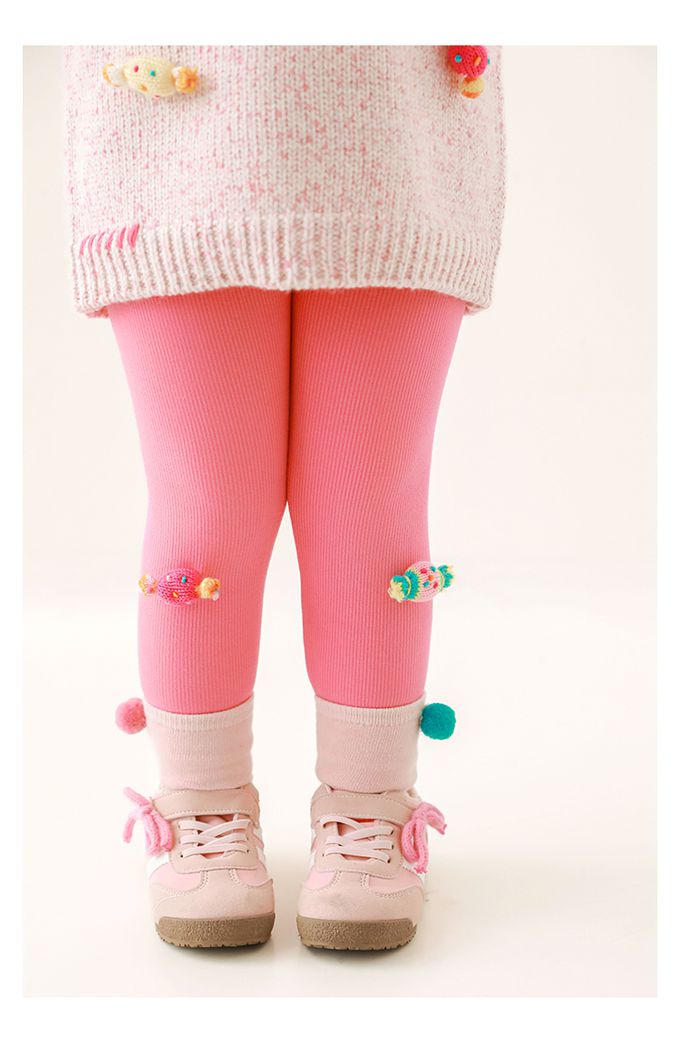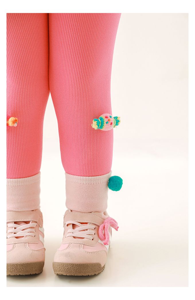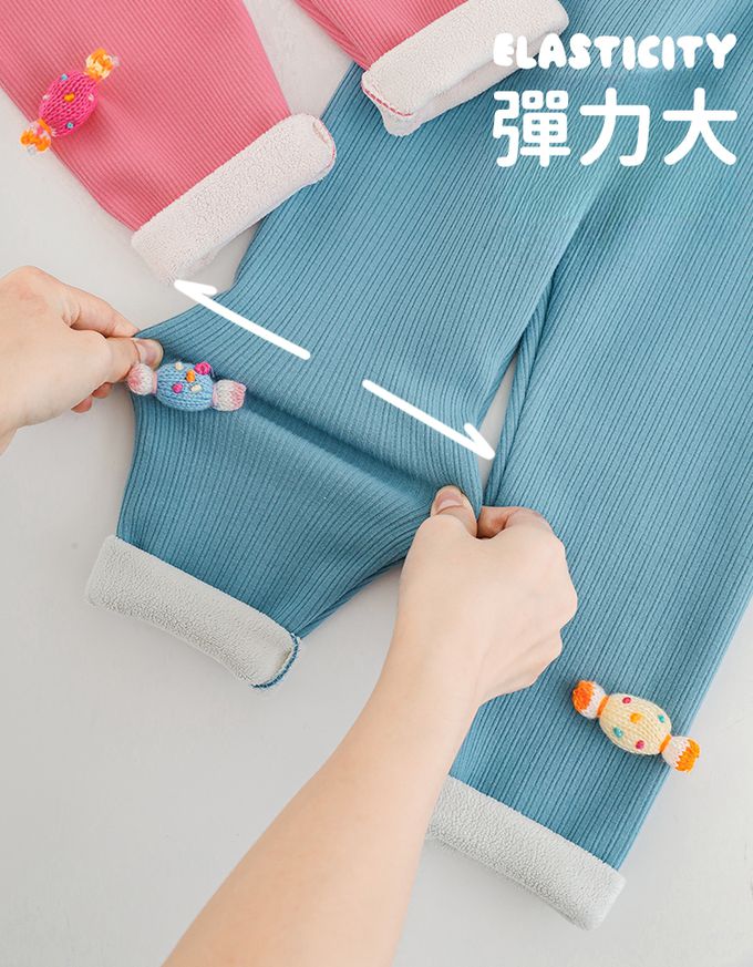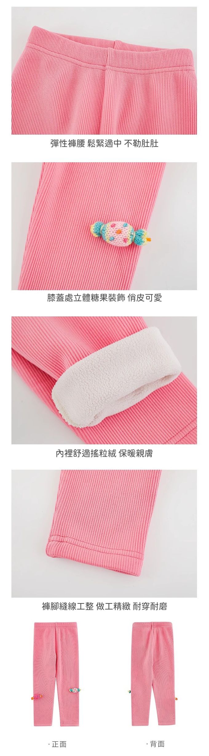 腰鬆緊內搭長褲(加絨)-立體糖果-玫粉色
