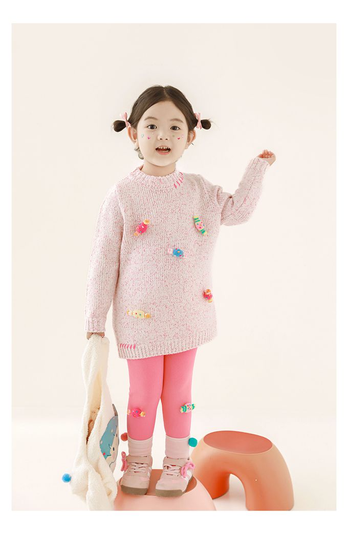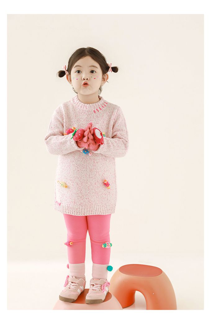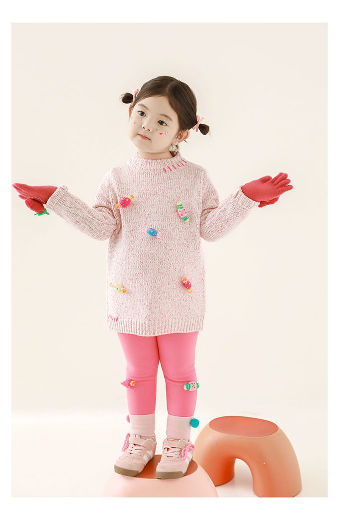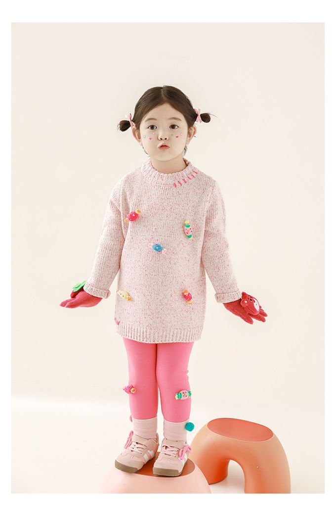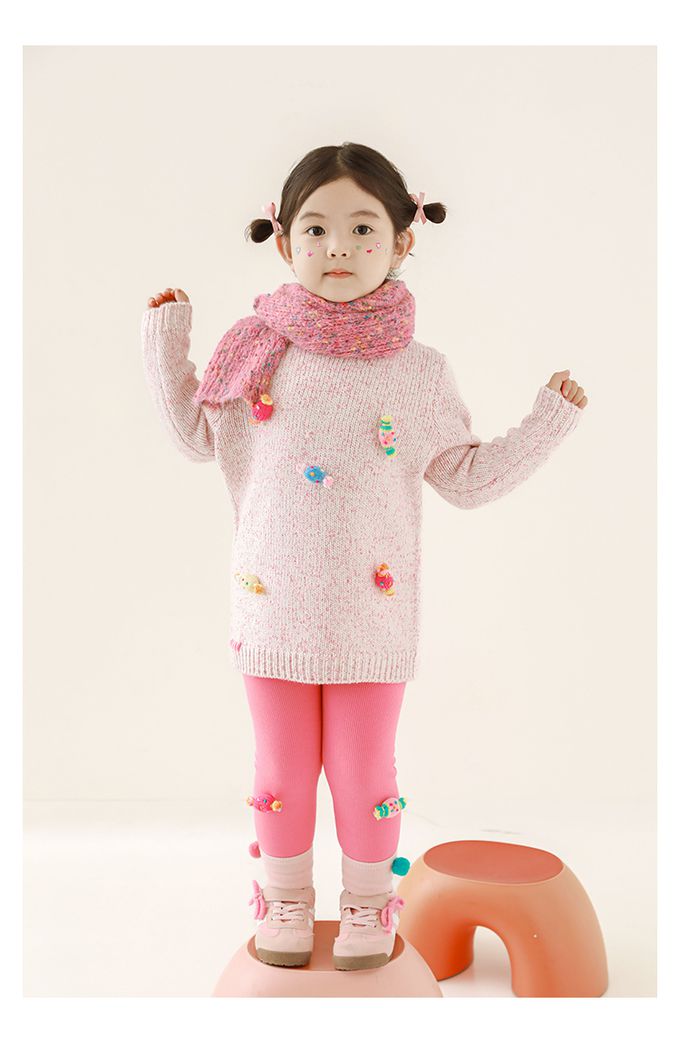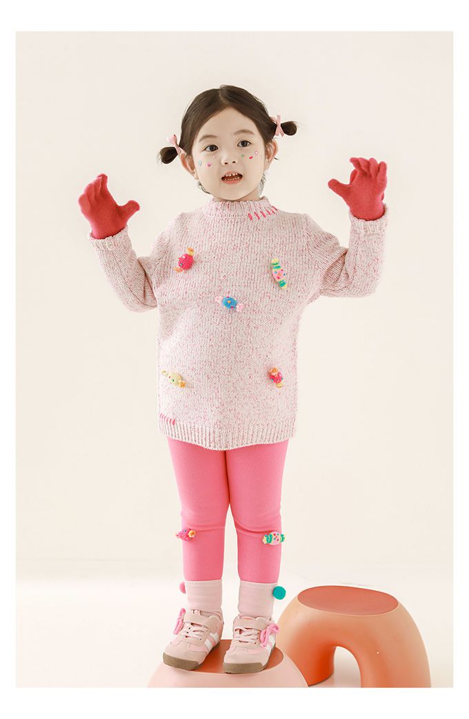 腰鬆緊內搭長褲(加絨)-立體糖果-玫粉色