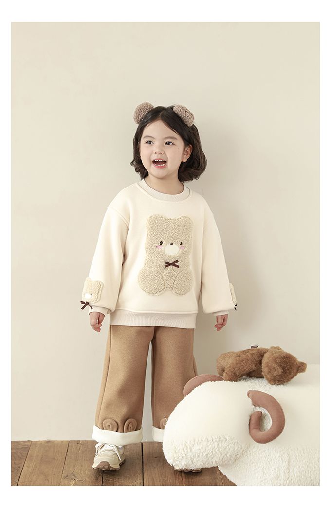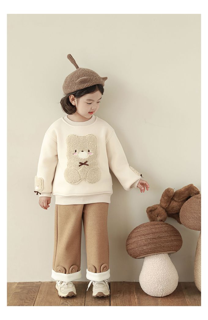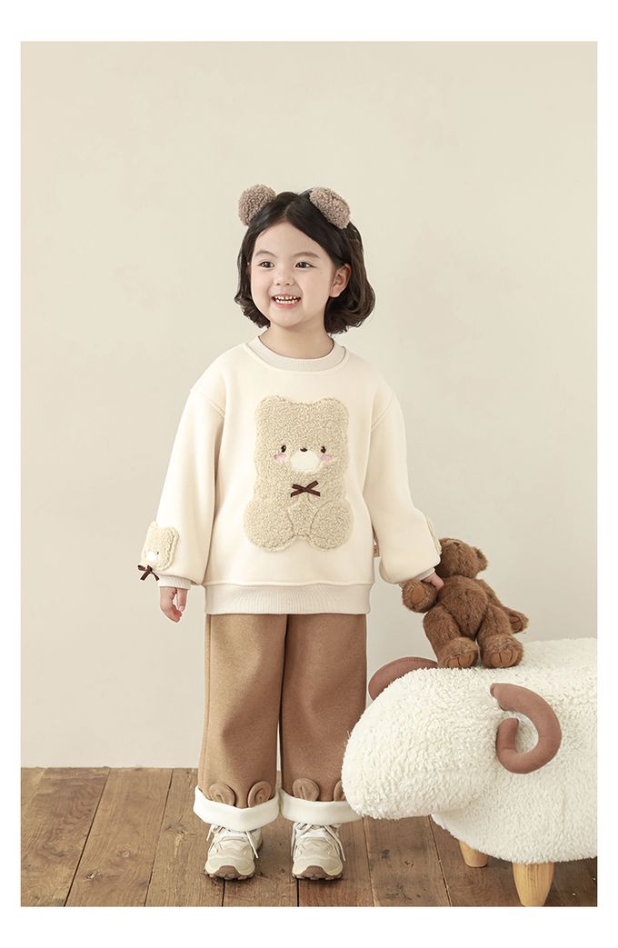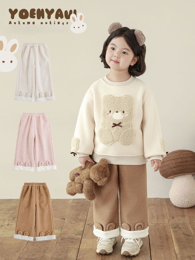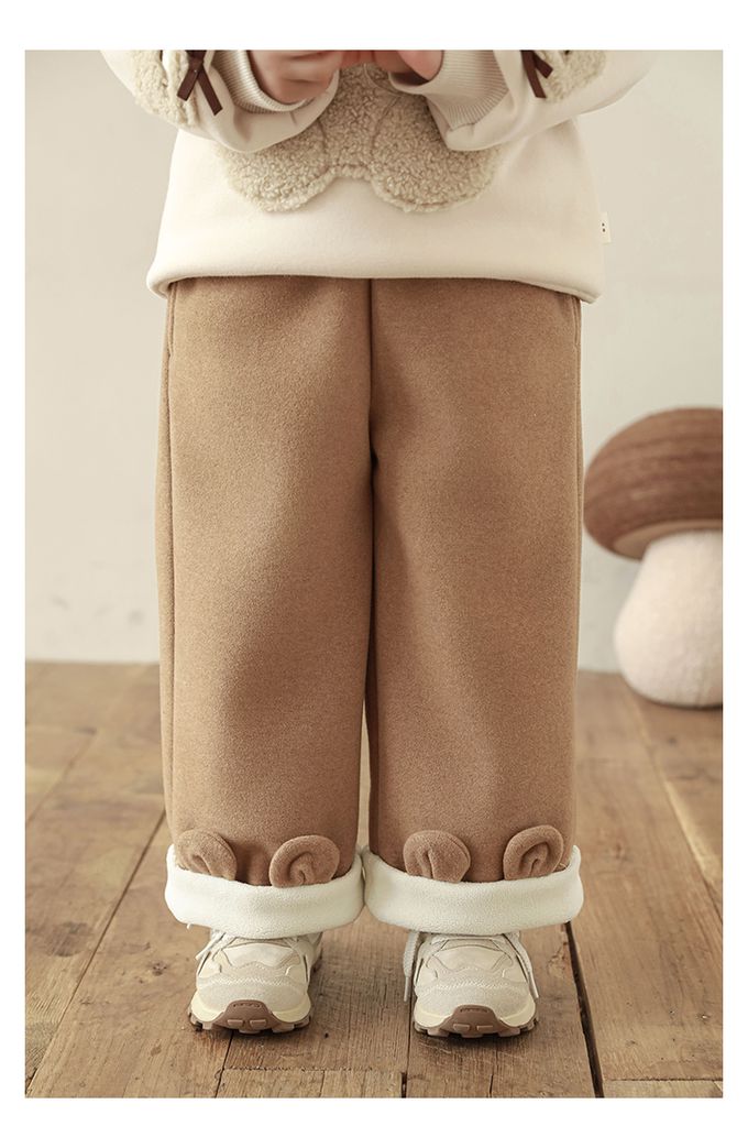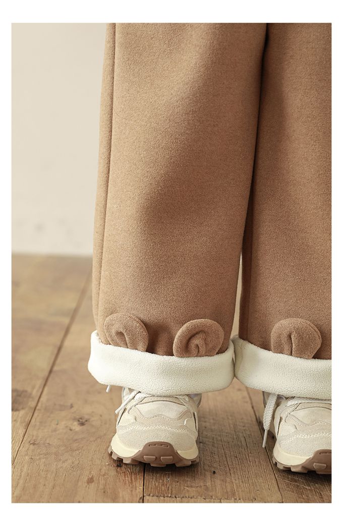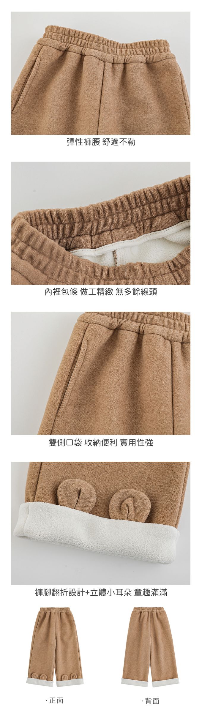 腰鬆緊百搭休閒長褲(加絨)-翻摺兔耳朵-卡其色