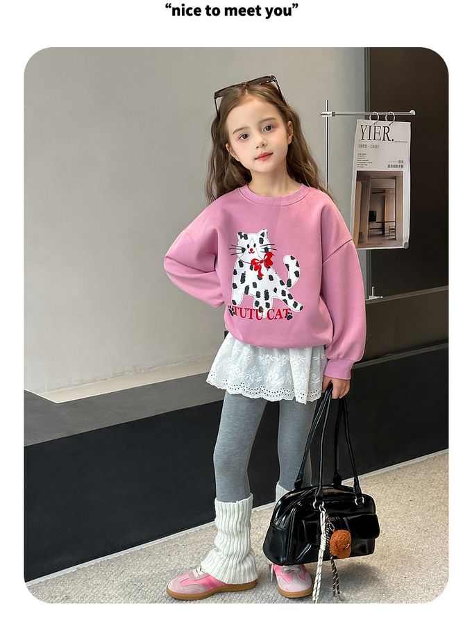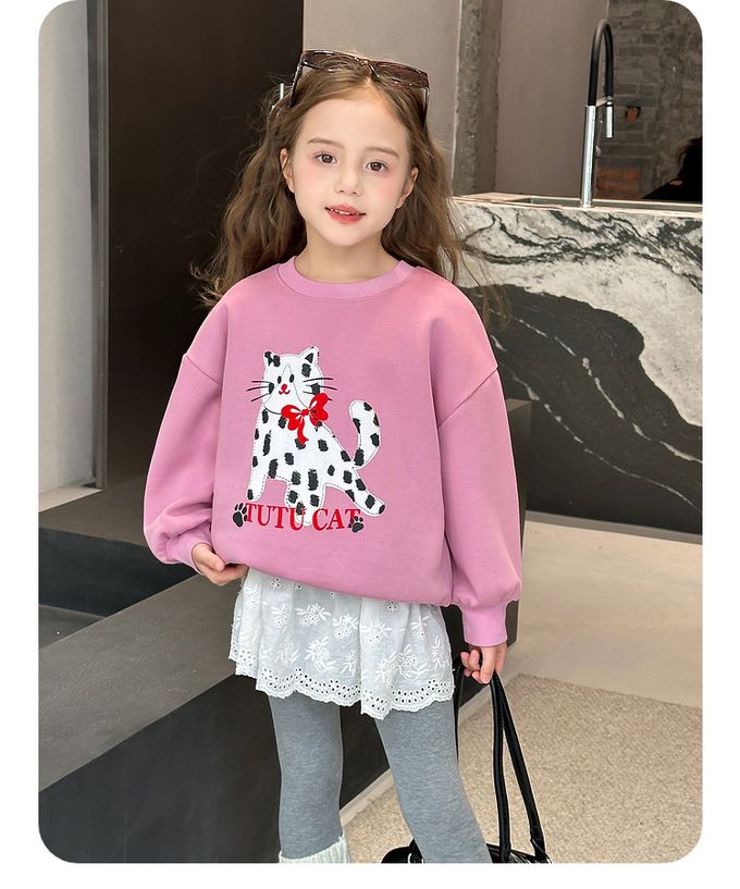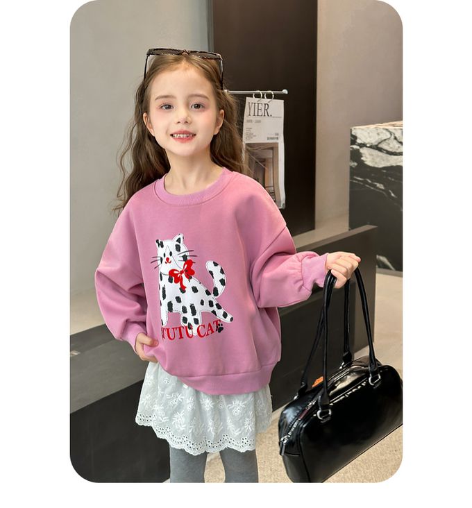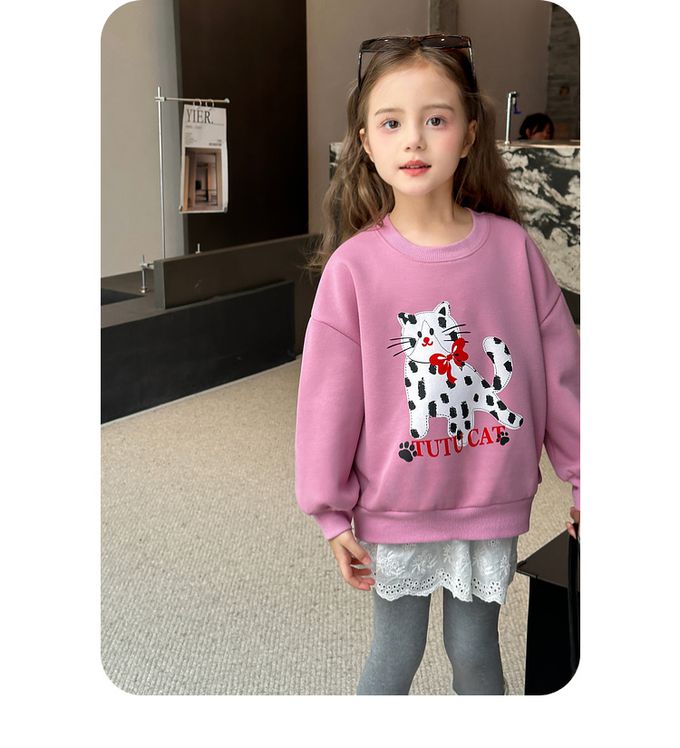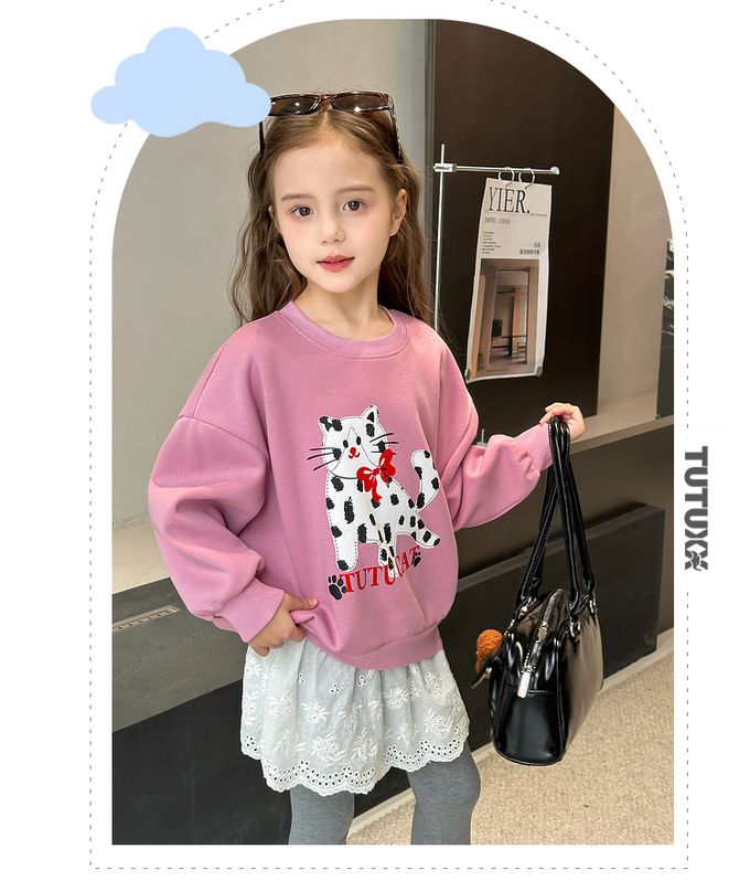 圓領落肩長袖上衣/大學T-萌寵派對-粉紫色