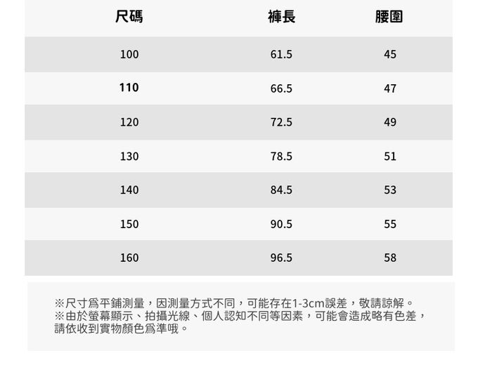 100cm、110cm、120cm、130cm、140cm、150cm、160cm